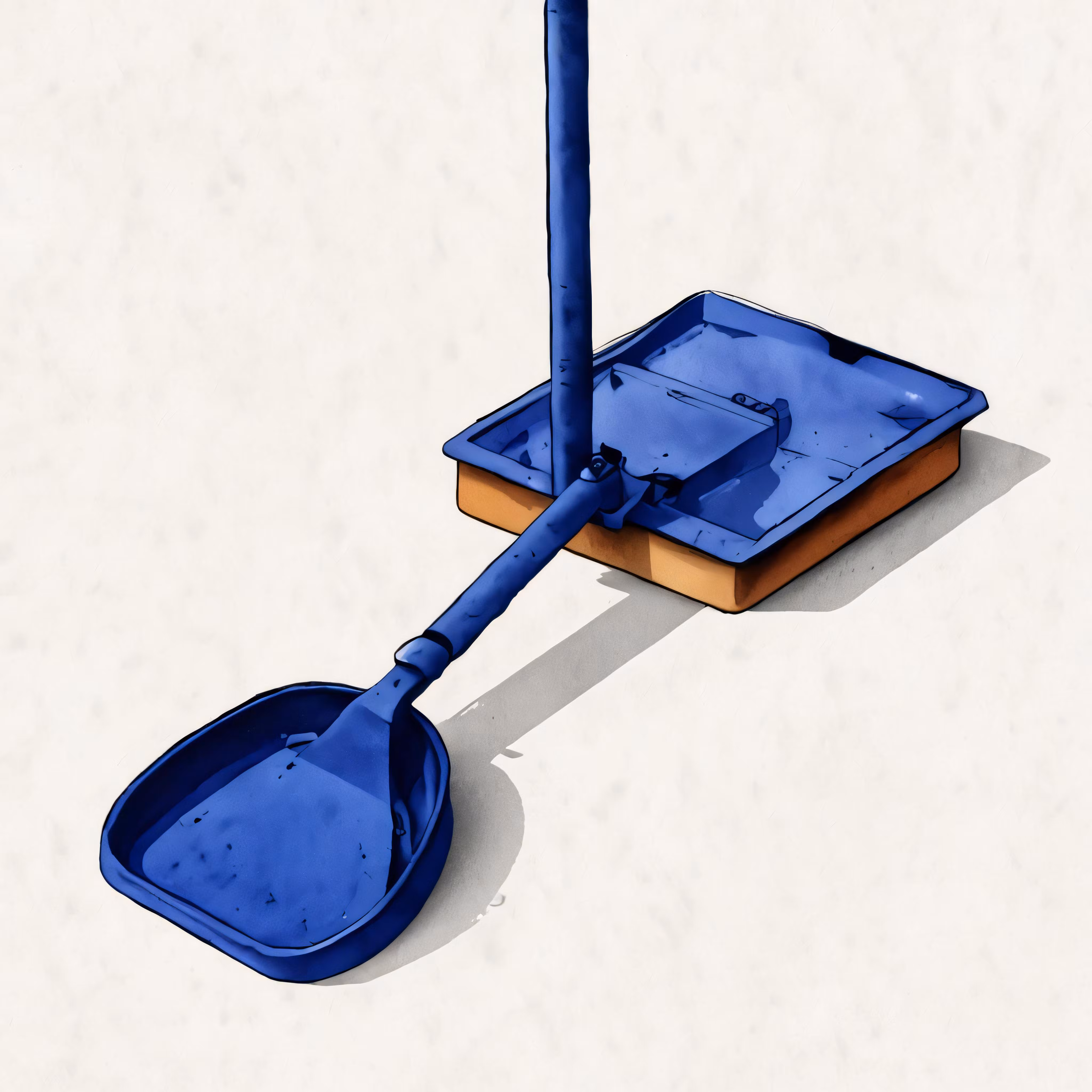High resolution picture, free to use, a small blue shovel leaning into a square with two handles on each end