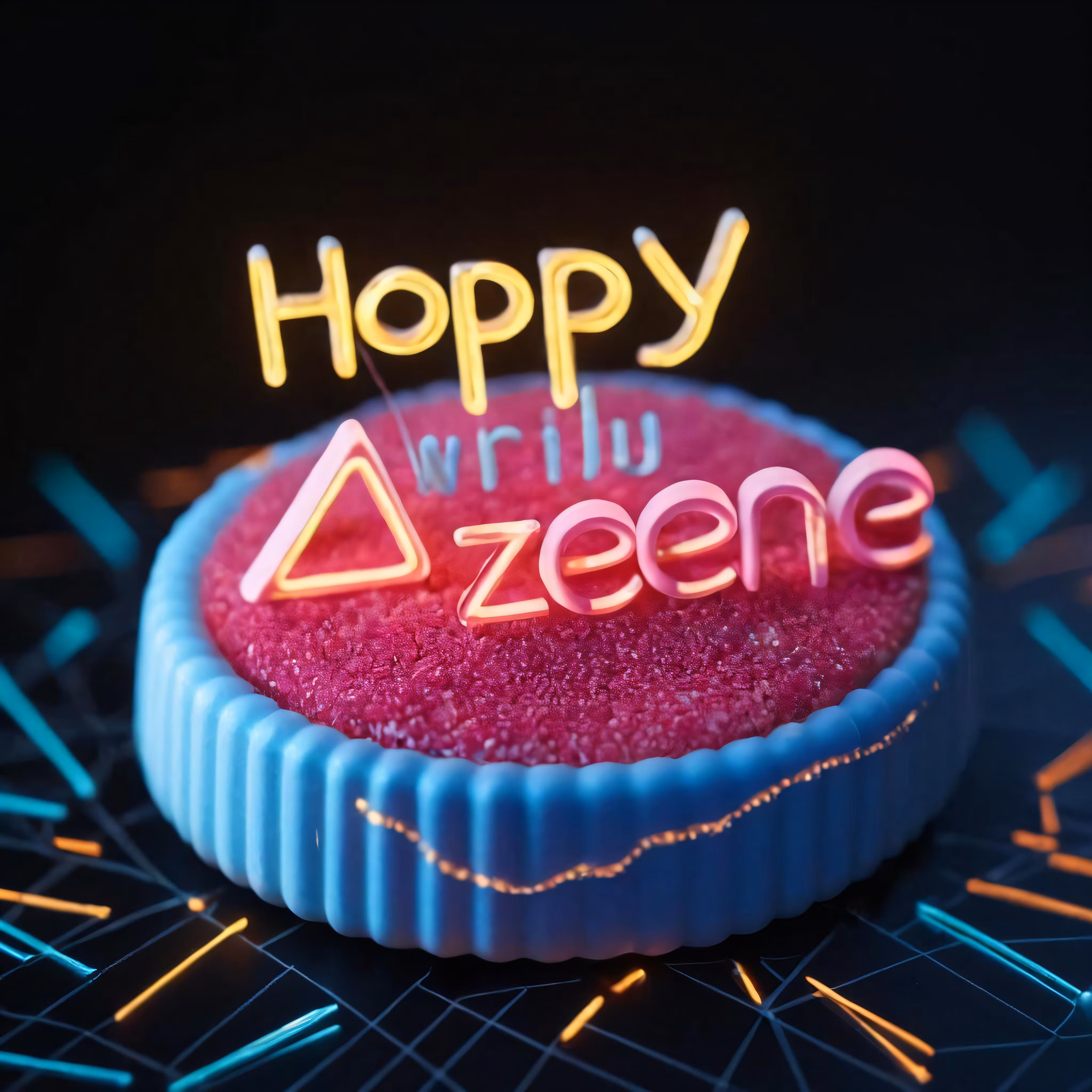 High resolution picture, free to use, a small cake that is decorated with the words happy birthday and a neon sign