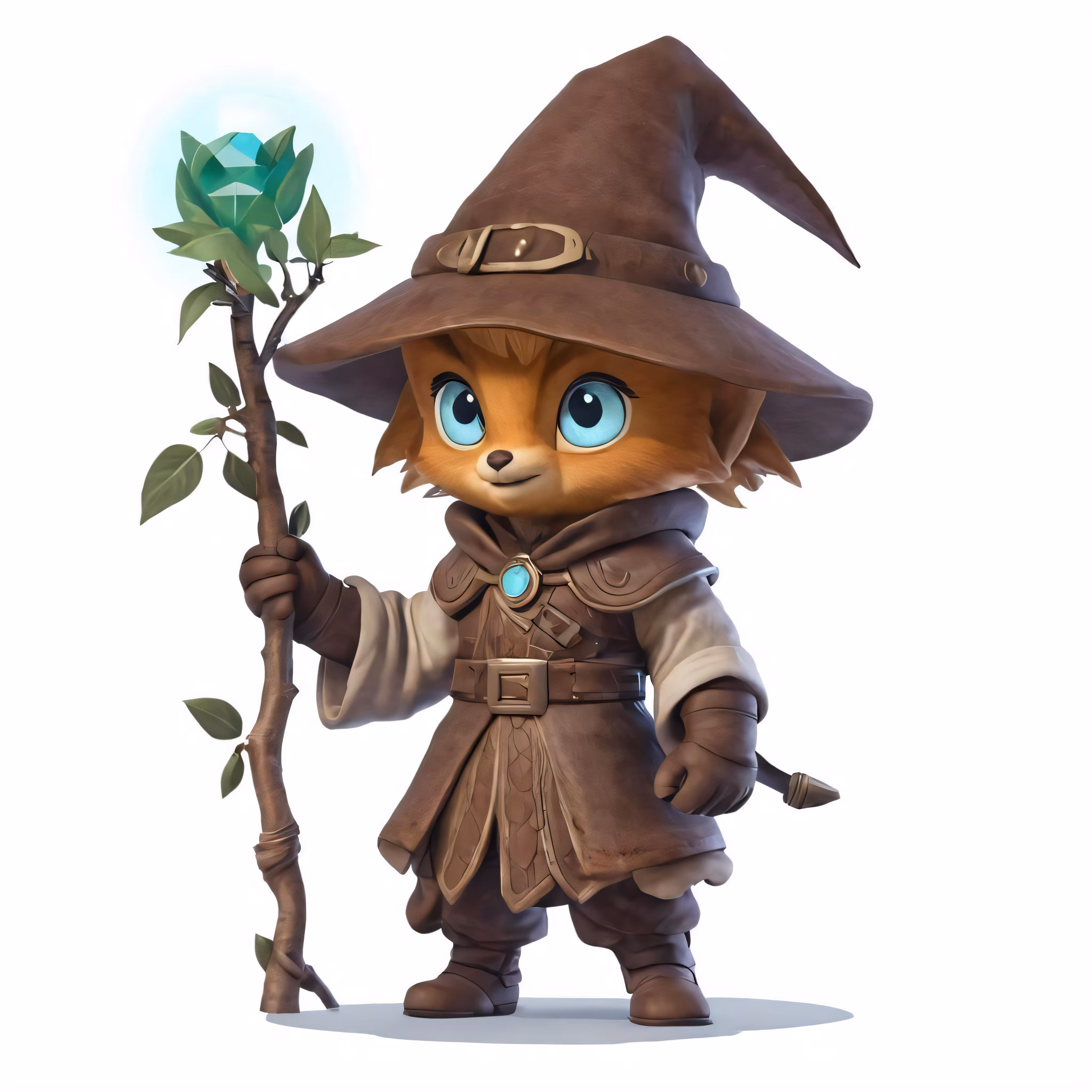 High resolution picture, free to use, a small cartoon style of a cute little character holding a leaf