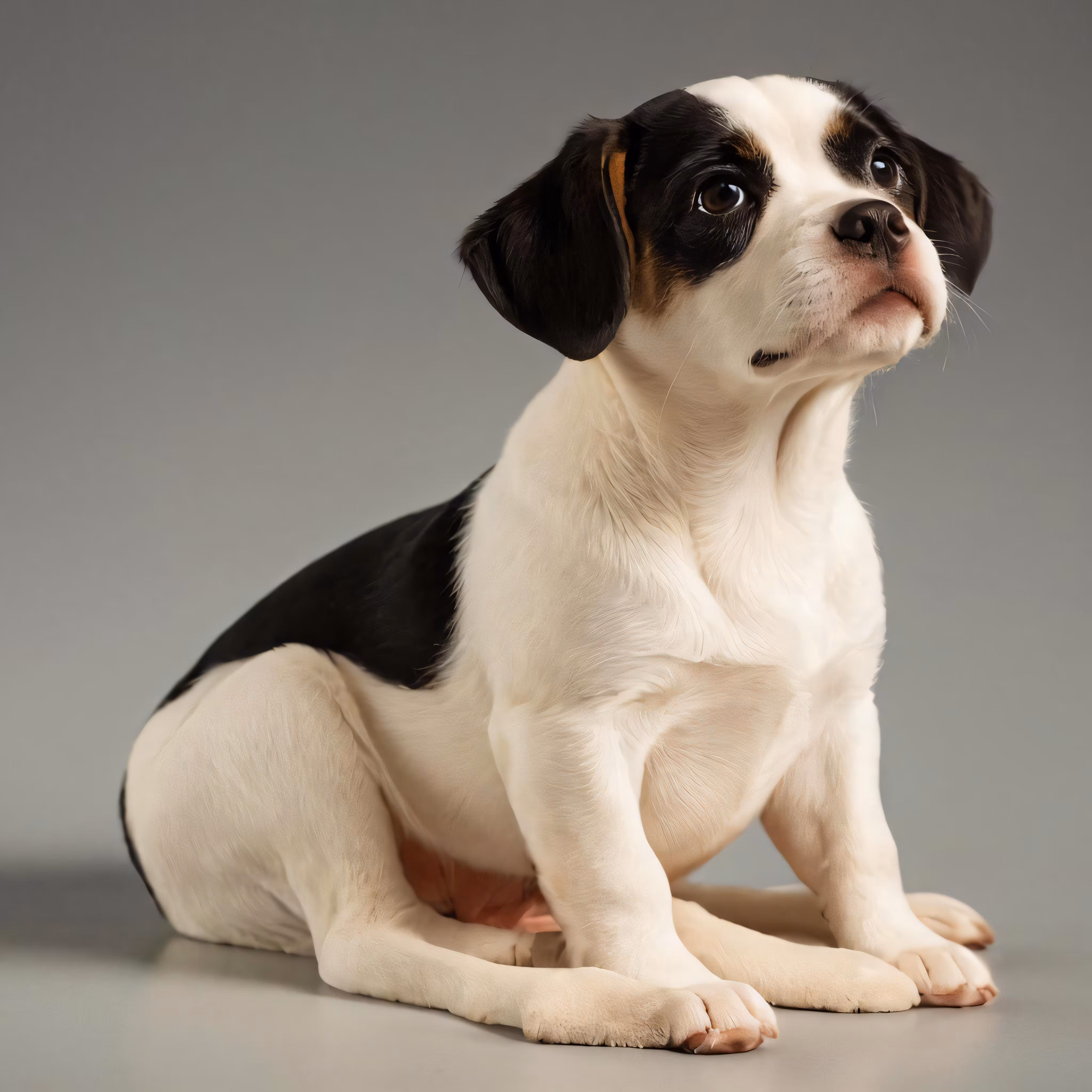 High resolution picture, free to use, a small dog sits and stares into the camera