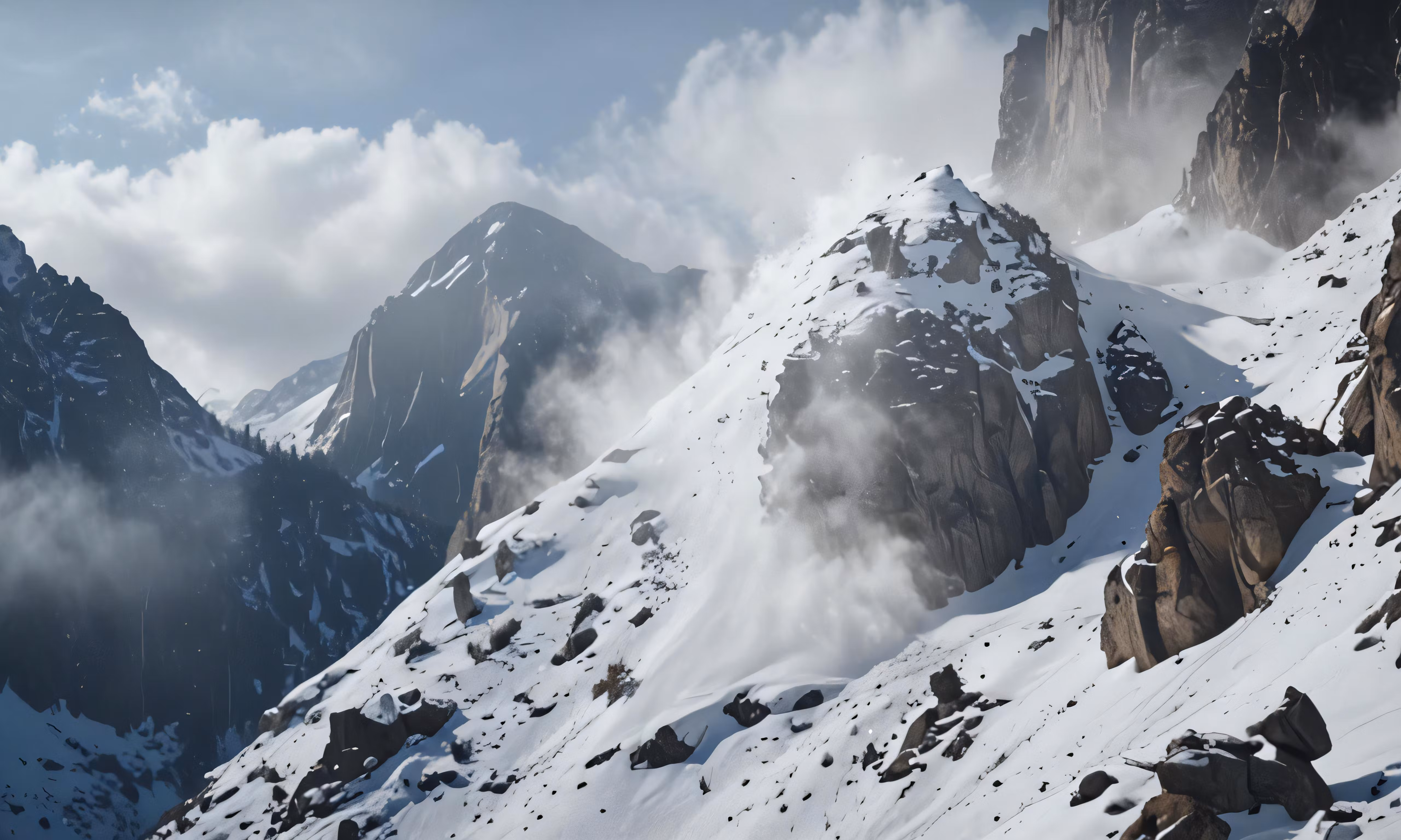 High resolution picture, free to use, a snow covered mountain ridge with clouds in the sky