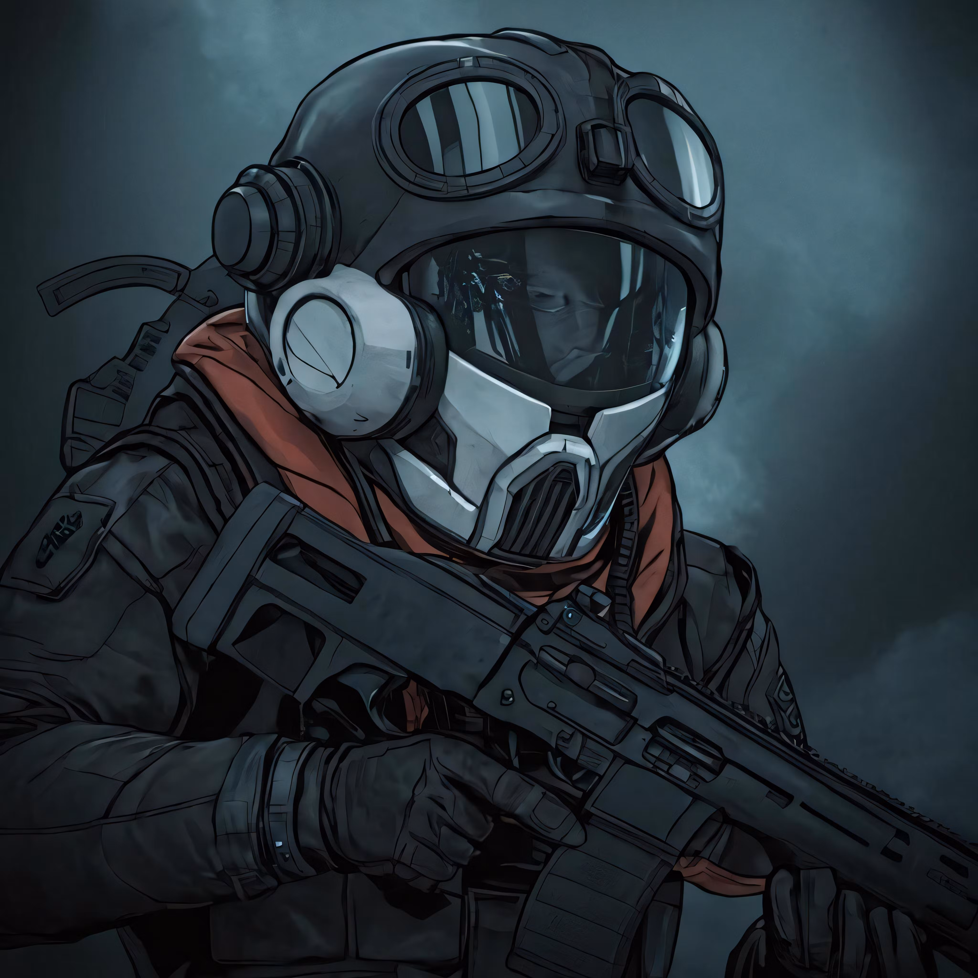 High resolution picture, free to use, a soldier with a gas mask holding a gun
