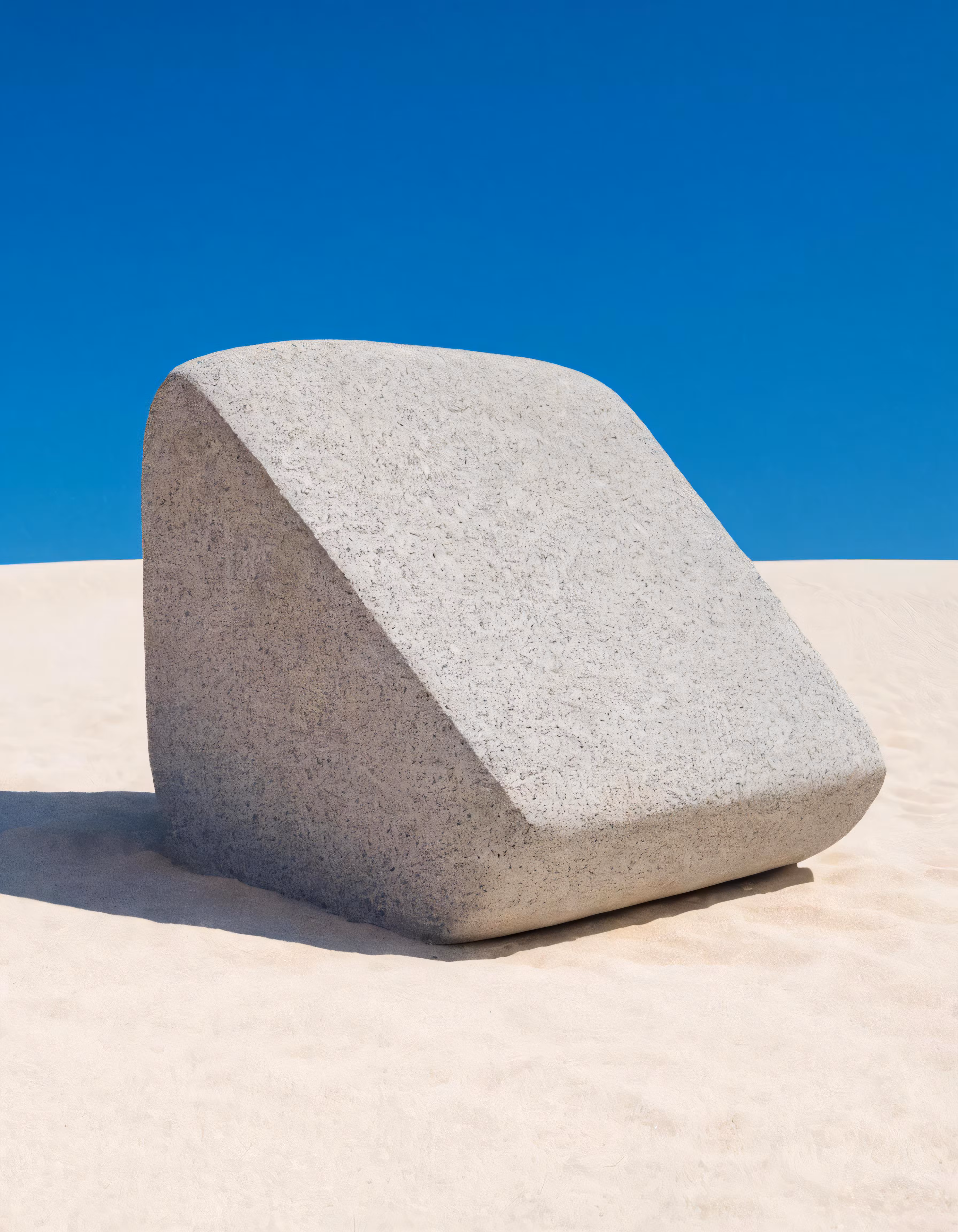 High resolution picture, free to use, a square shaped rock is sitting in the desert