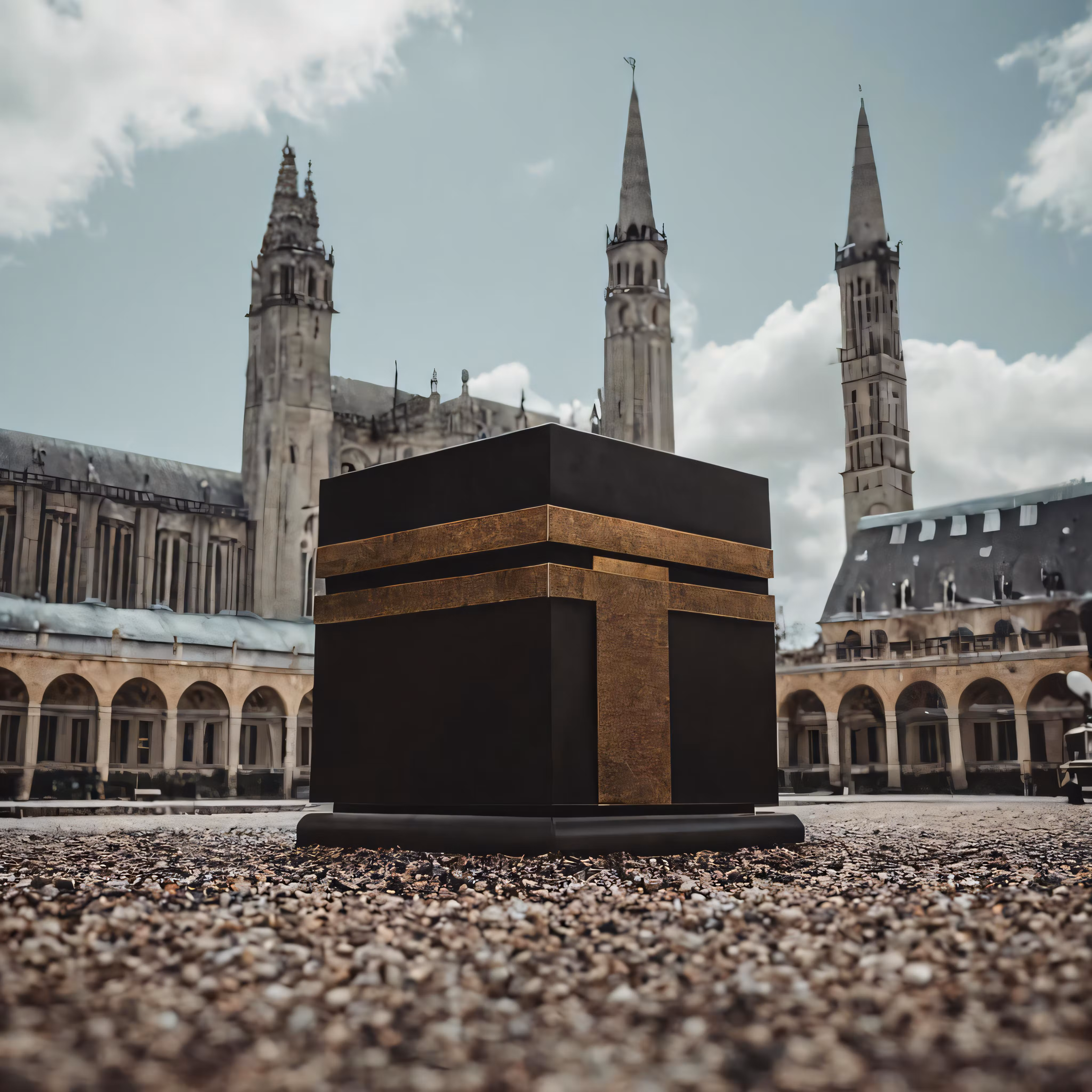 High resolution picture, free to use, a statue stands in front of a large cathedral