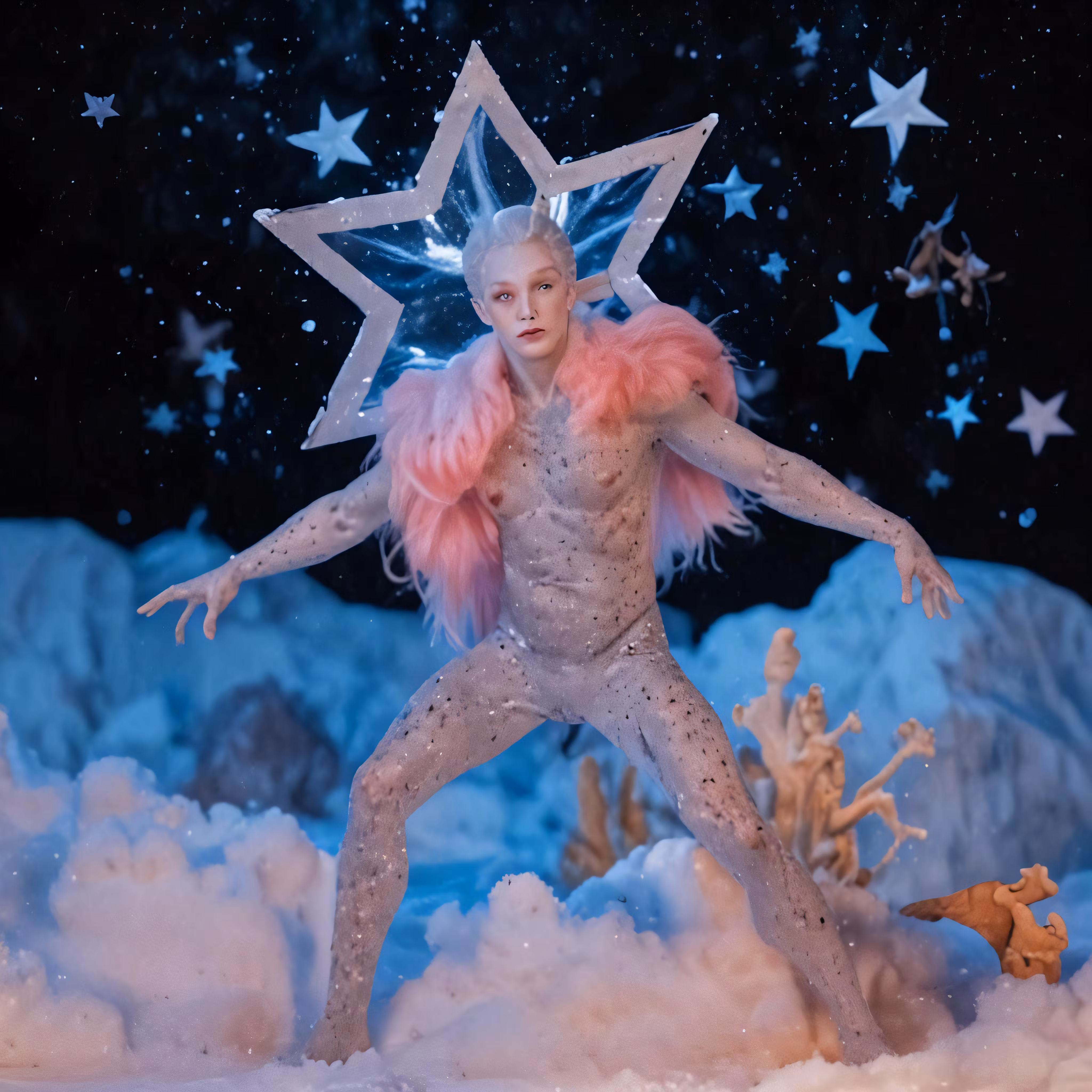 High resolution picture, free to use, a statue with an unusual outfit and many stars on it