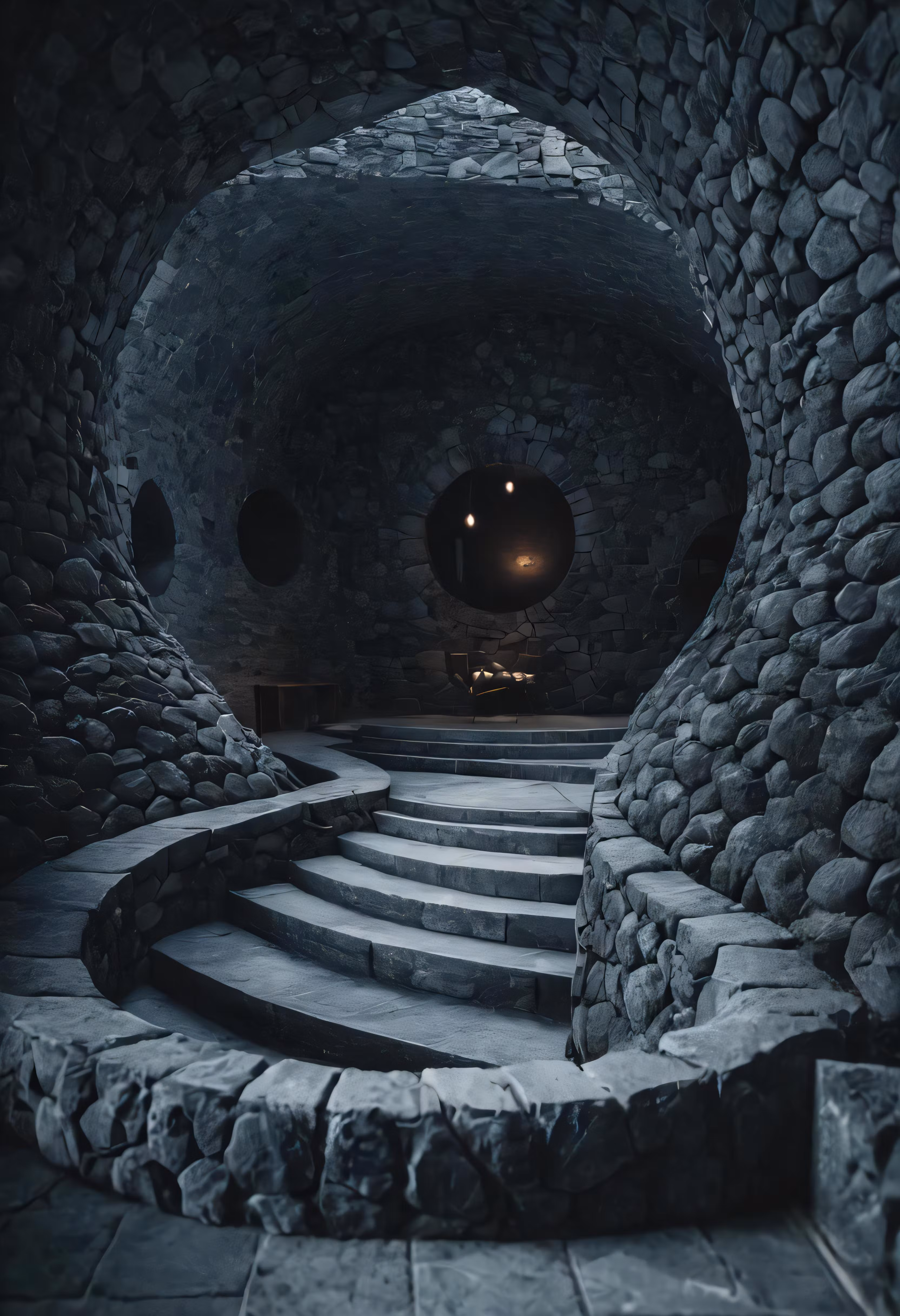 High resolution picture, free to use, a stone staircase leading to another room