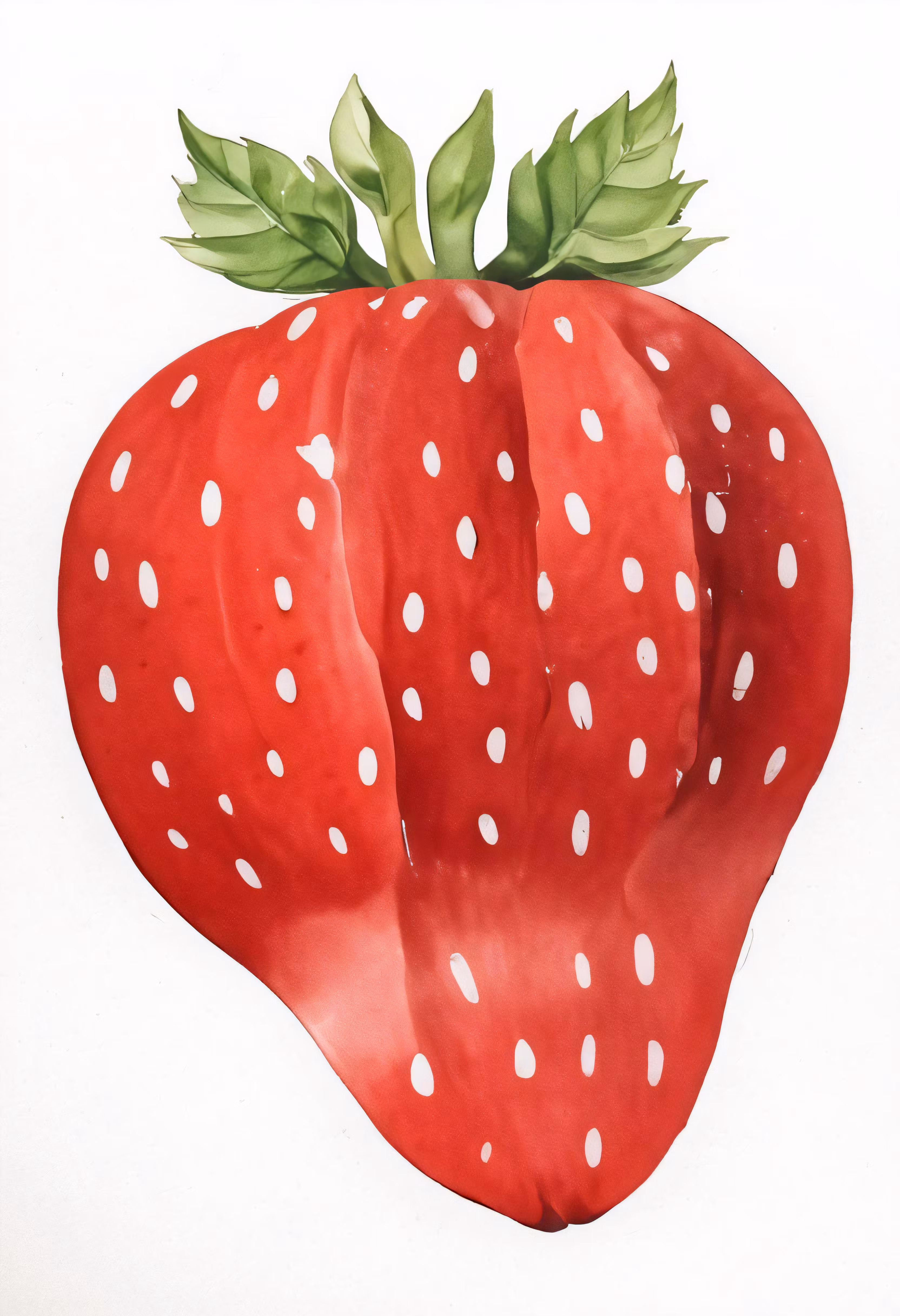 High resolution picture, free to use, a strawberry drawn with watercolor pencil and markers