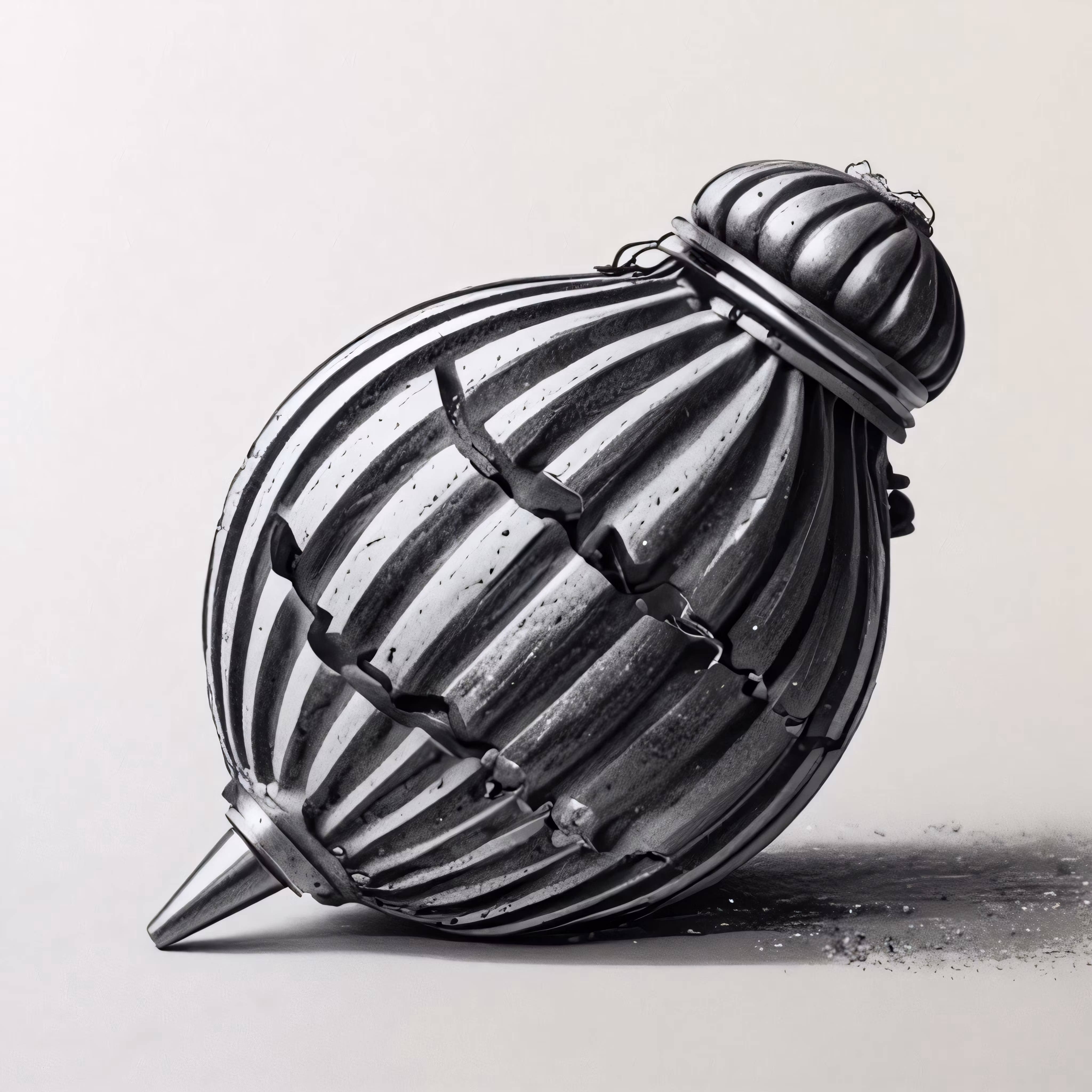 High resolution picture, free to use, a striped vase sitting on the ground with its lid down
