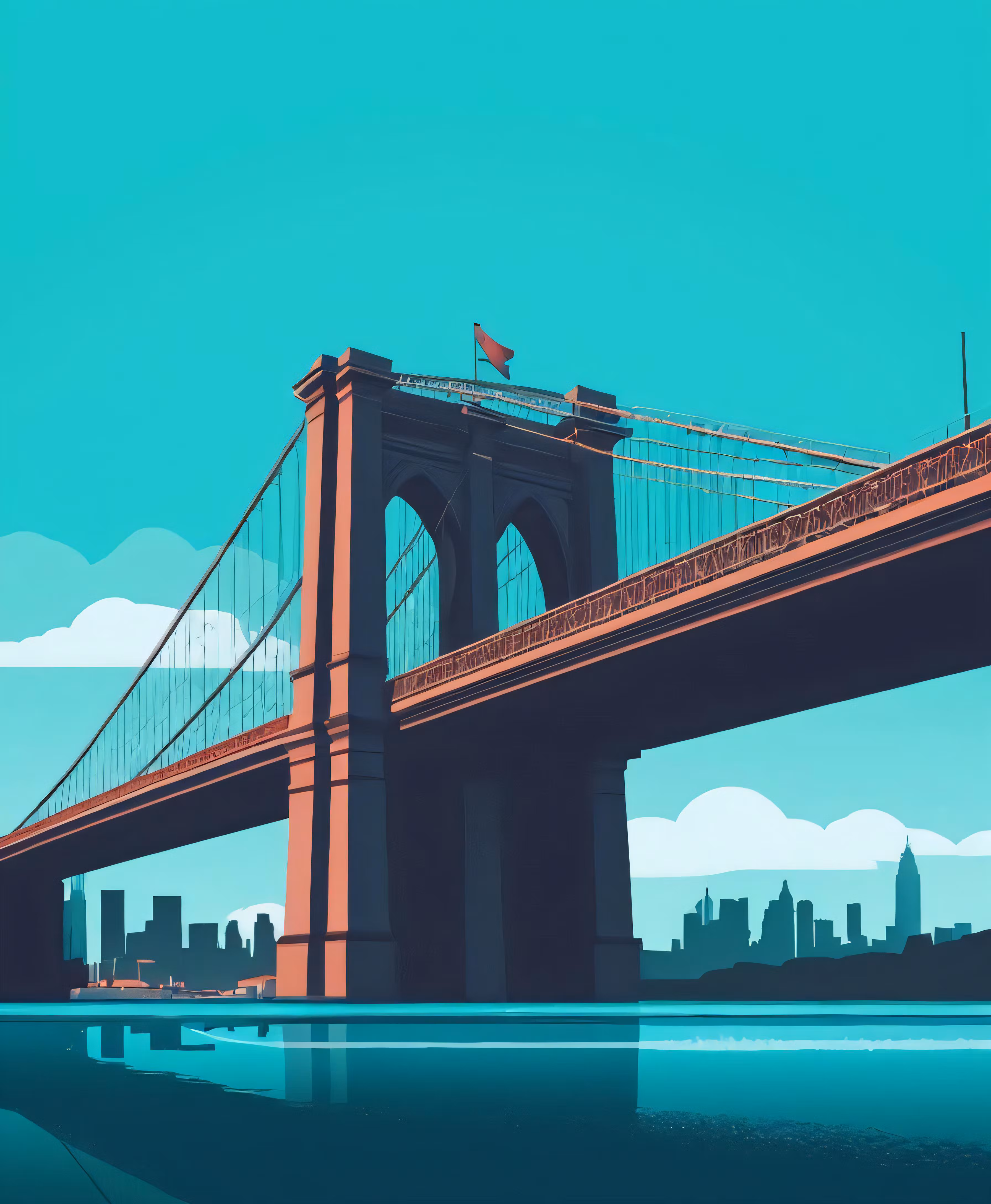 High resolution picture, free to use, a stylized illustration of the brooklyn bridge with the new york city in the distance