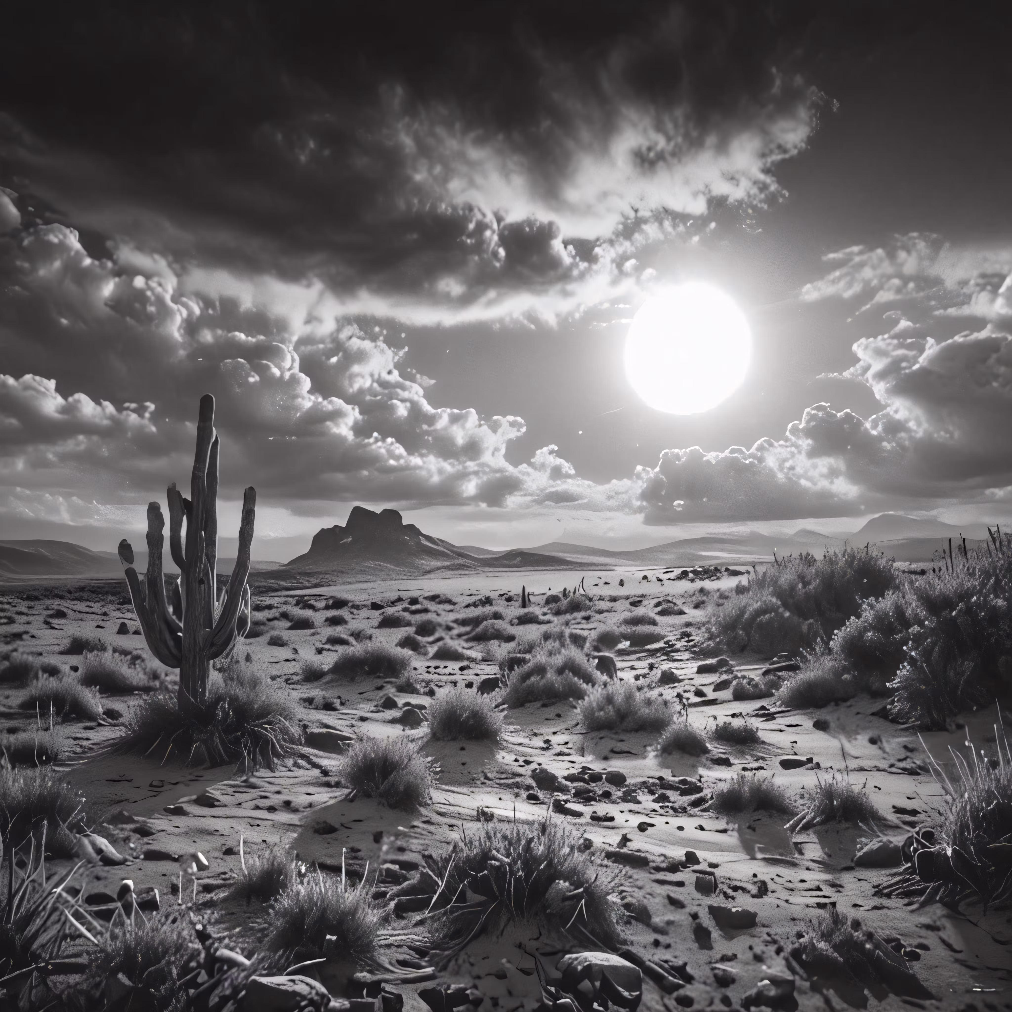 High resolution picture, free to use, a sunset over an arid land and cactus