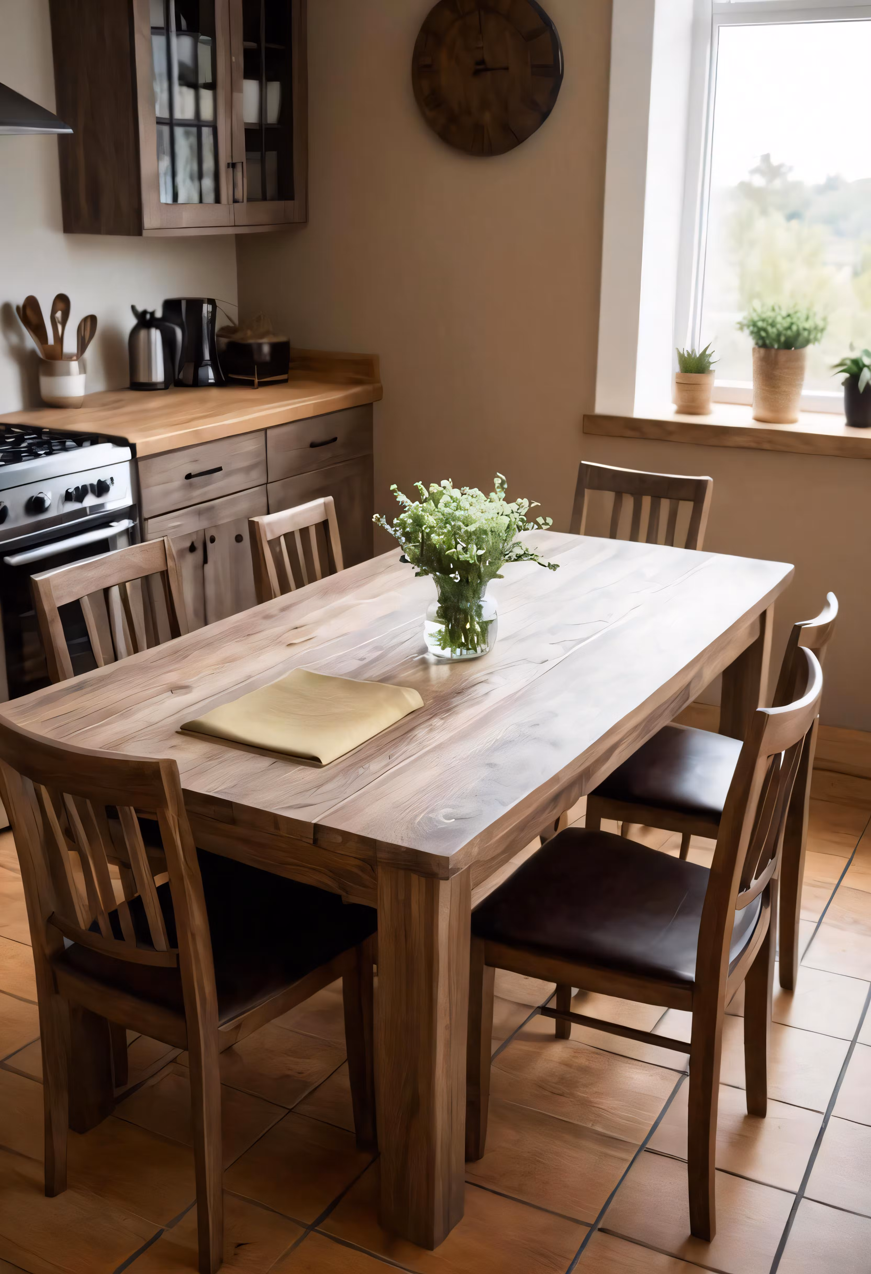 High resolution picture, free to use, a table and chairs in the kitchen with a wooden table