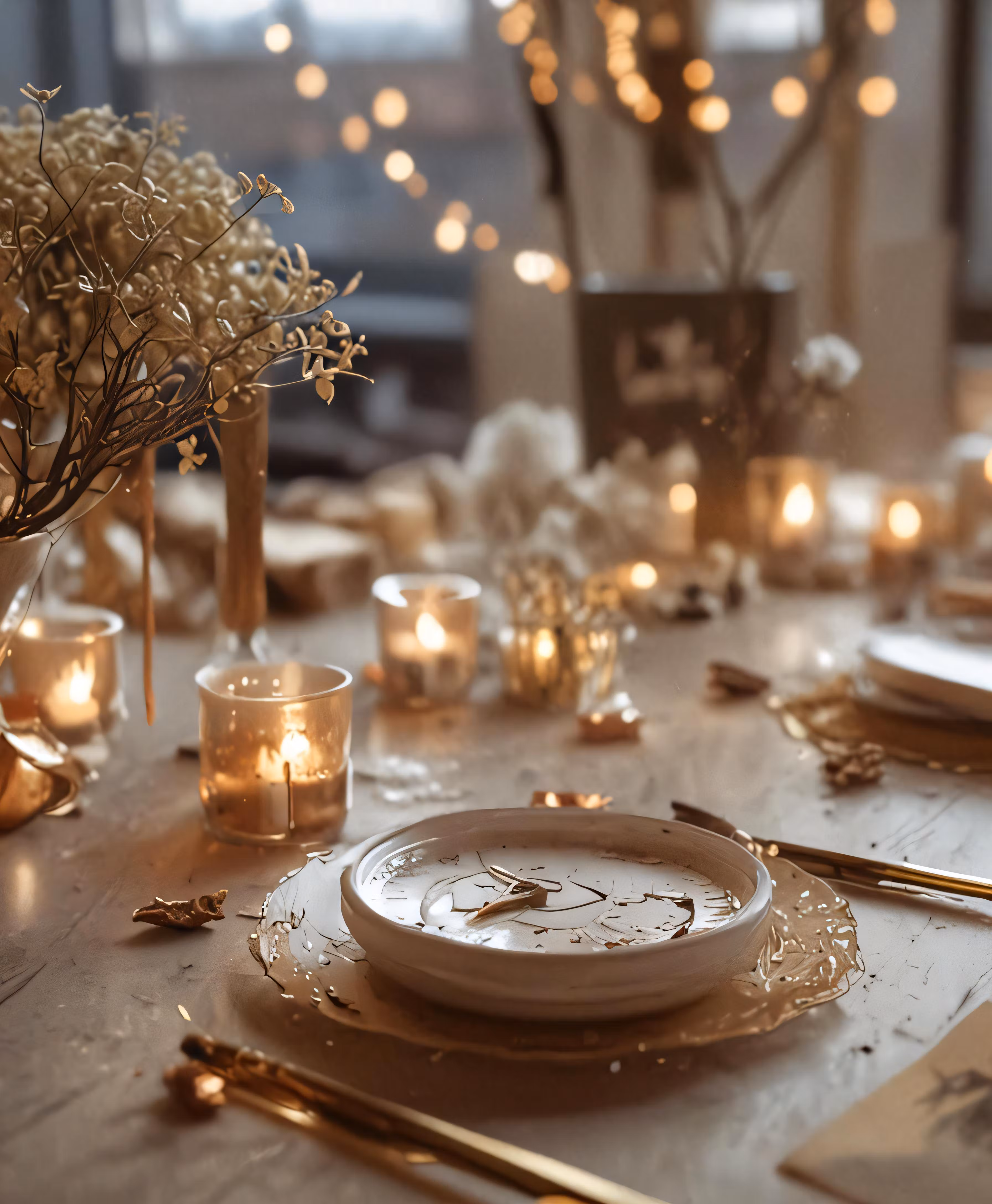 High resolution picture, free to use, a table is set with gold place settings