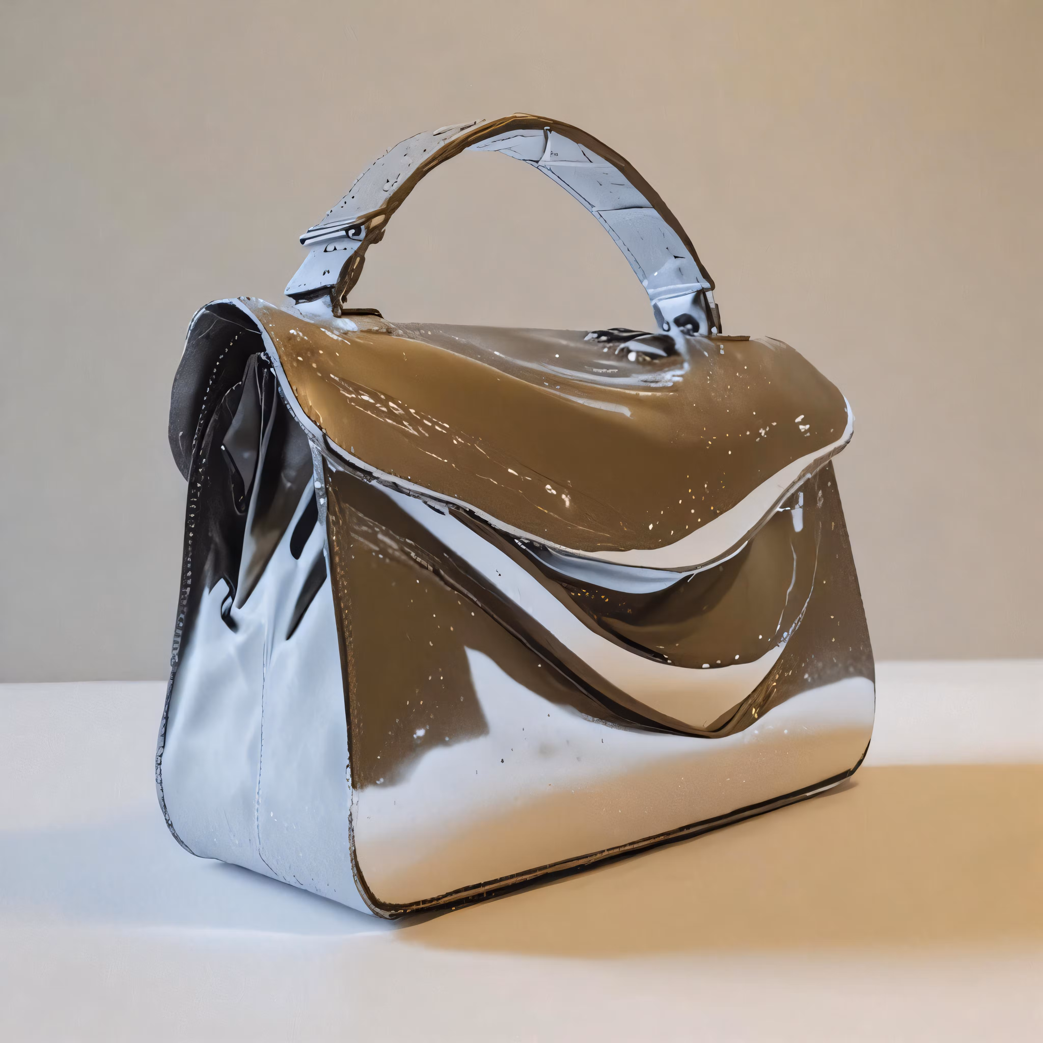 High resolution picture, free to use, a tan and white bag sitting on top of a counter