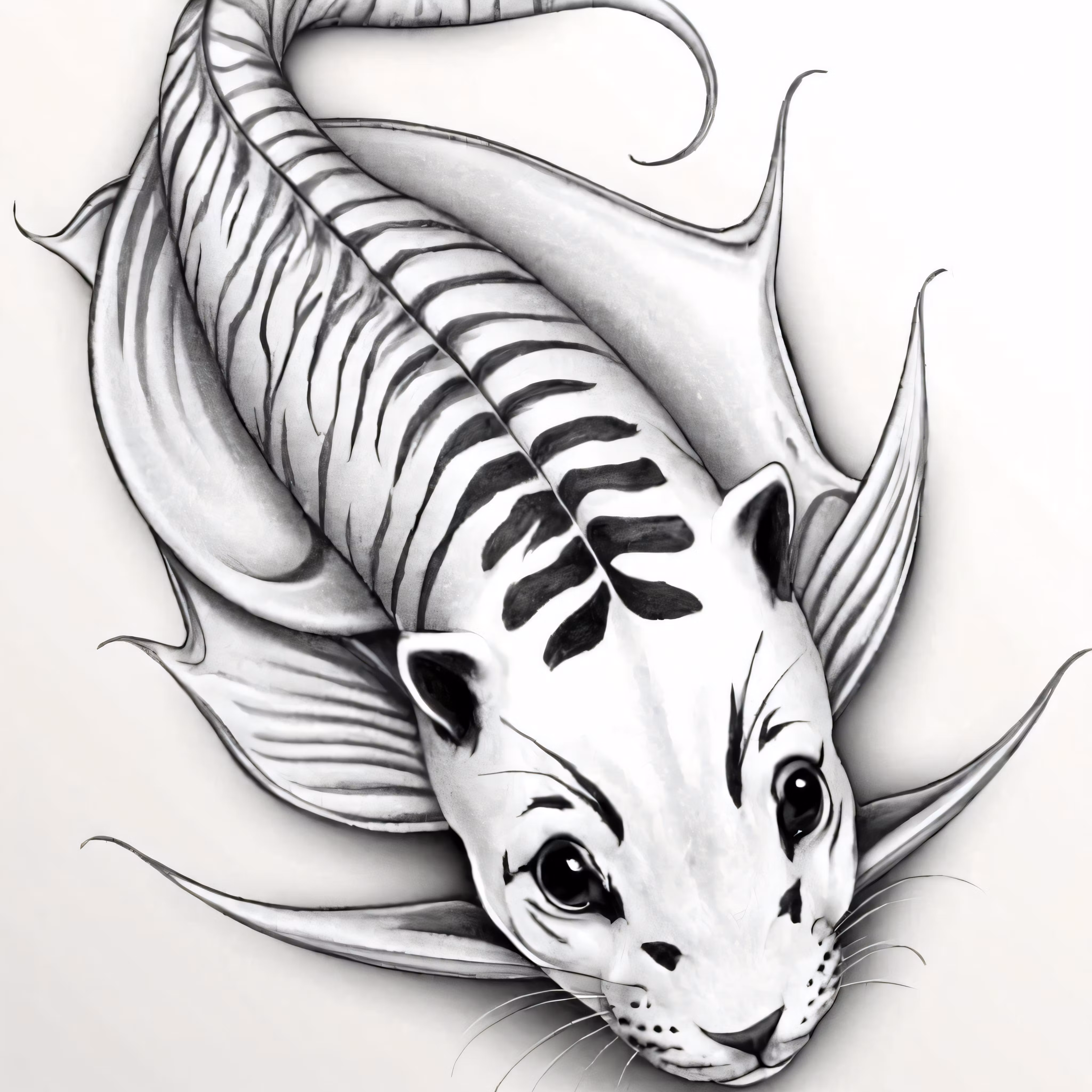 High resolution picture, free to use, a tiger is in the water, and there are two black and white animals on it