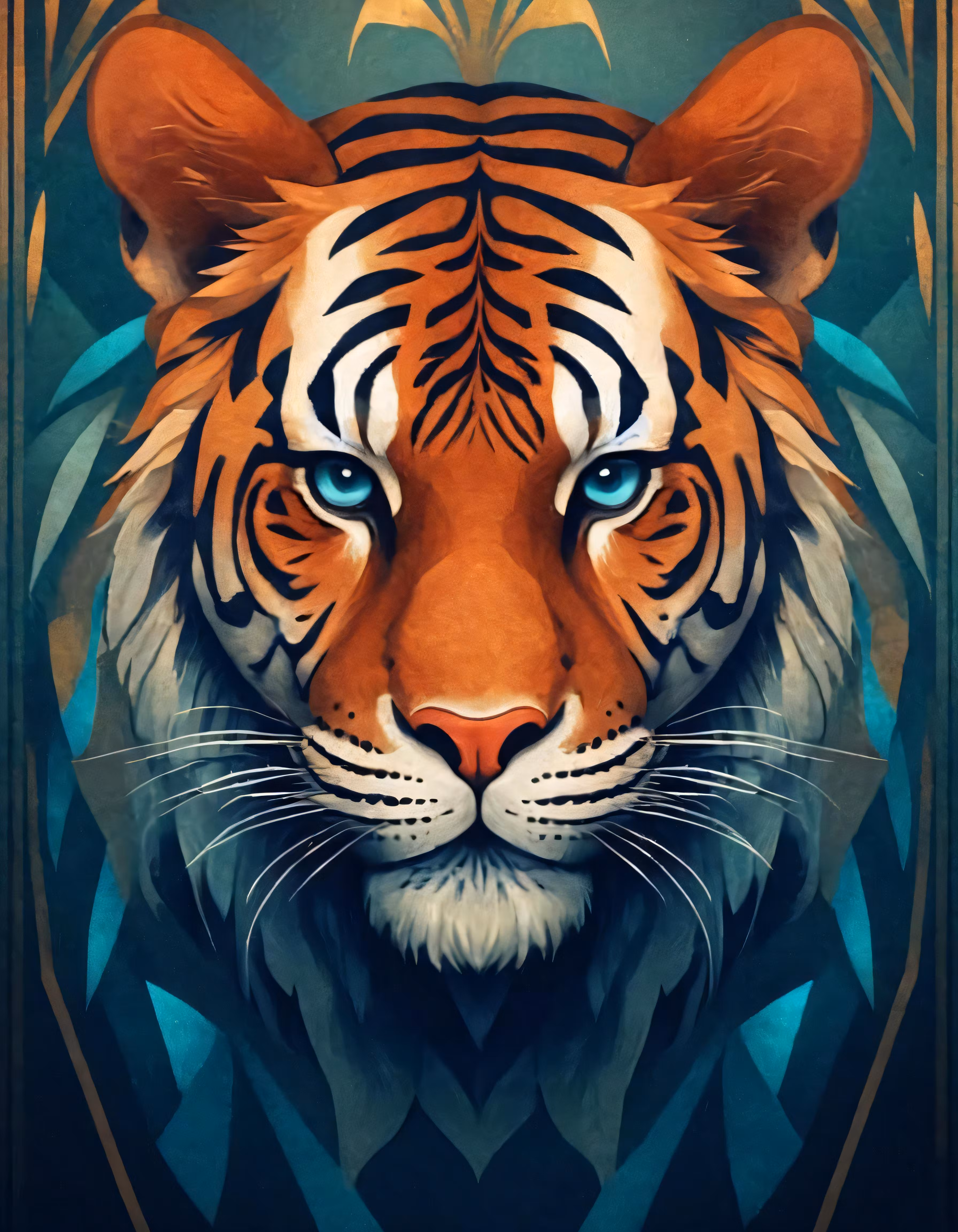 High resolution picture, free to use, a tiger with blue eyes is seen from the front