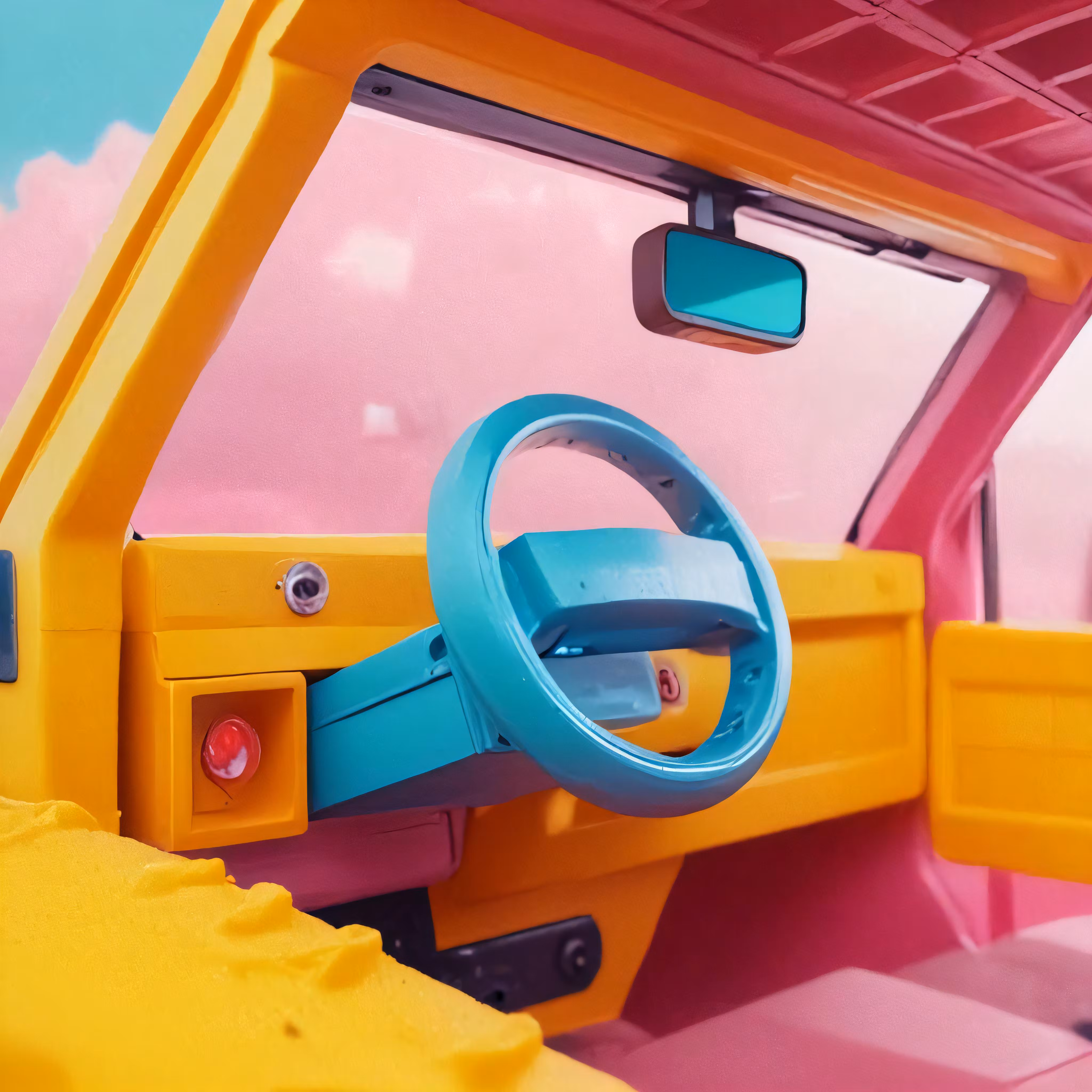 High resolution picture, free to use, a toy car with a steering wheel sitting on the ground