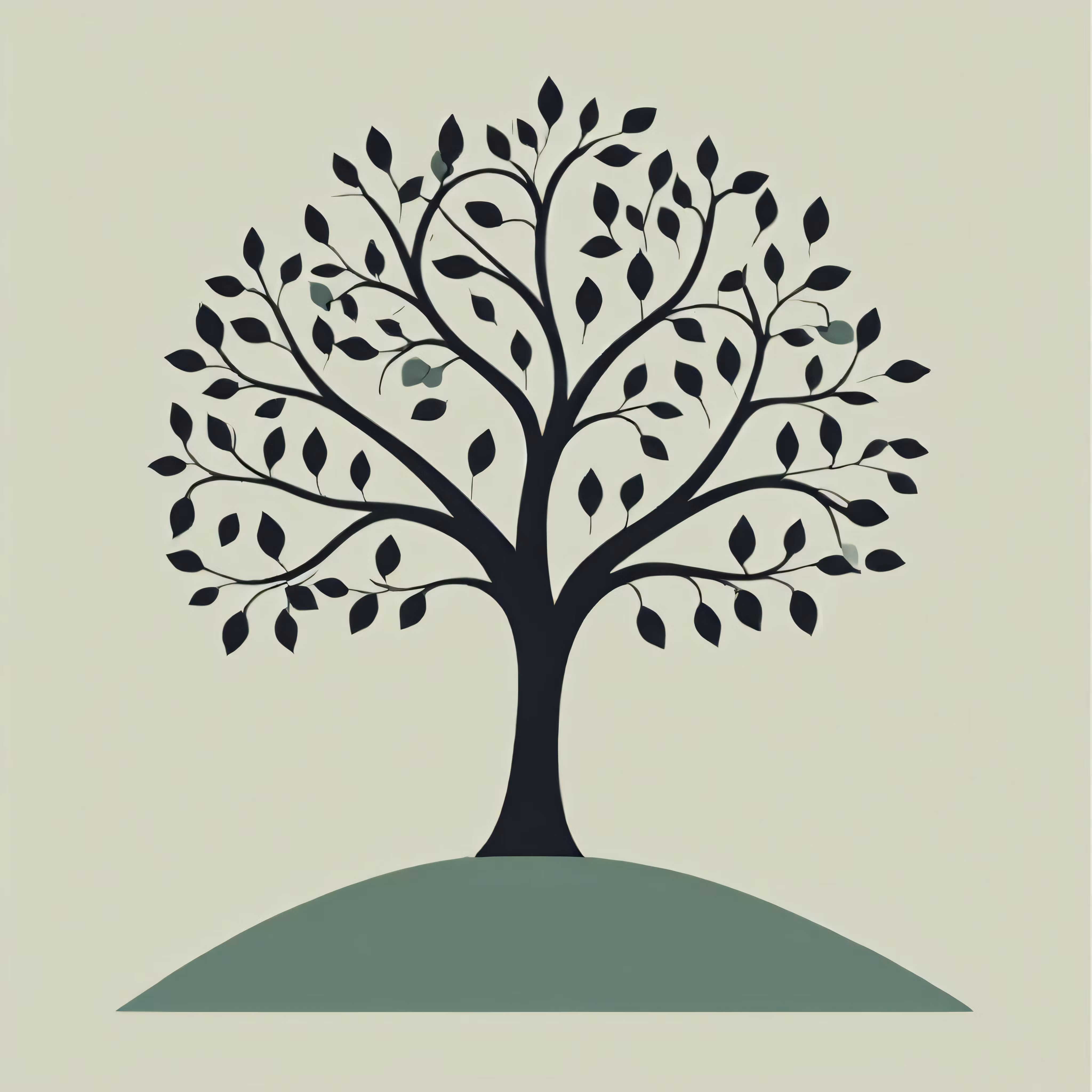 High resolution picture, free to use, a tree on a hill with leaves in the foreground
