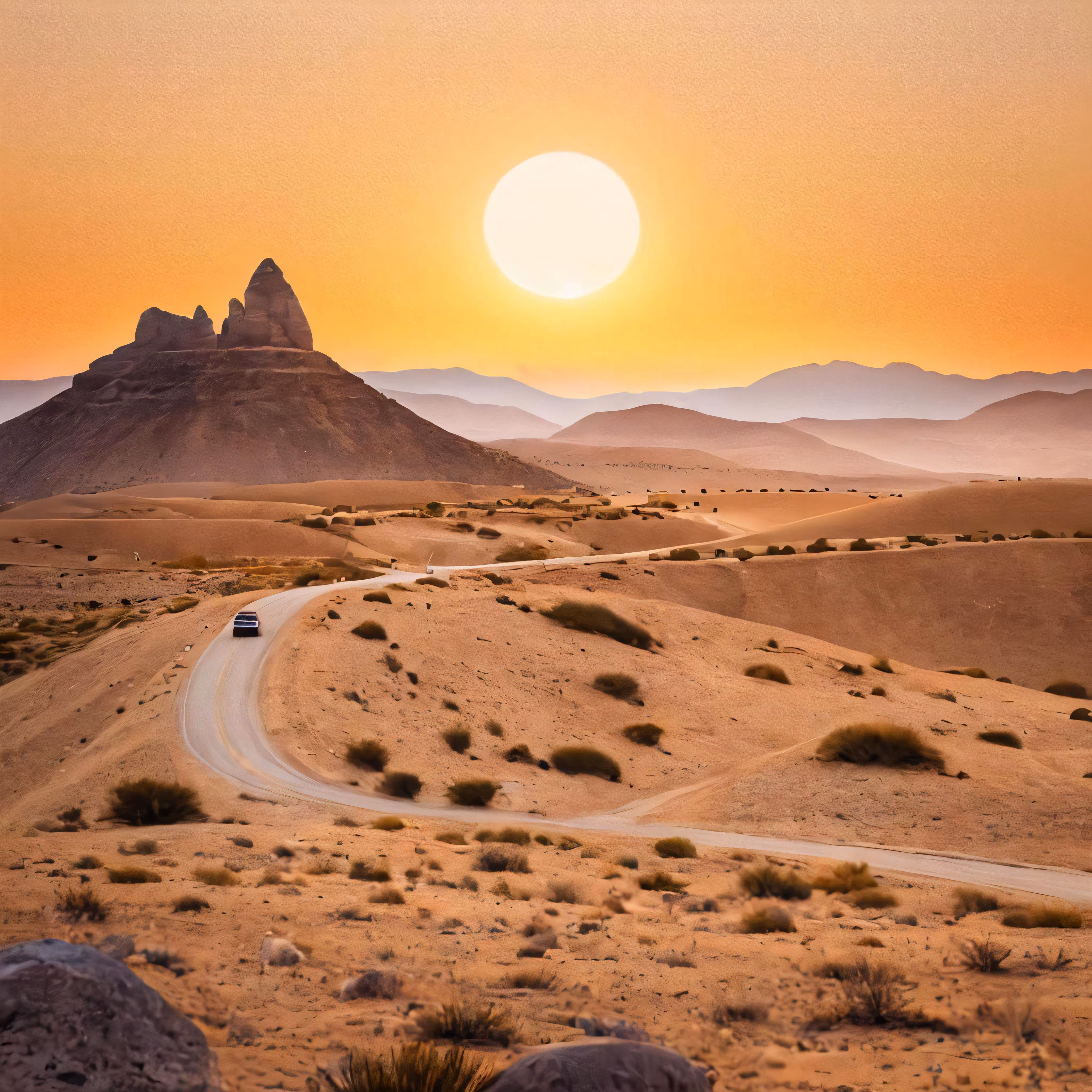 High resolution picture, free to use, a truck driving down a rural road at sunset