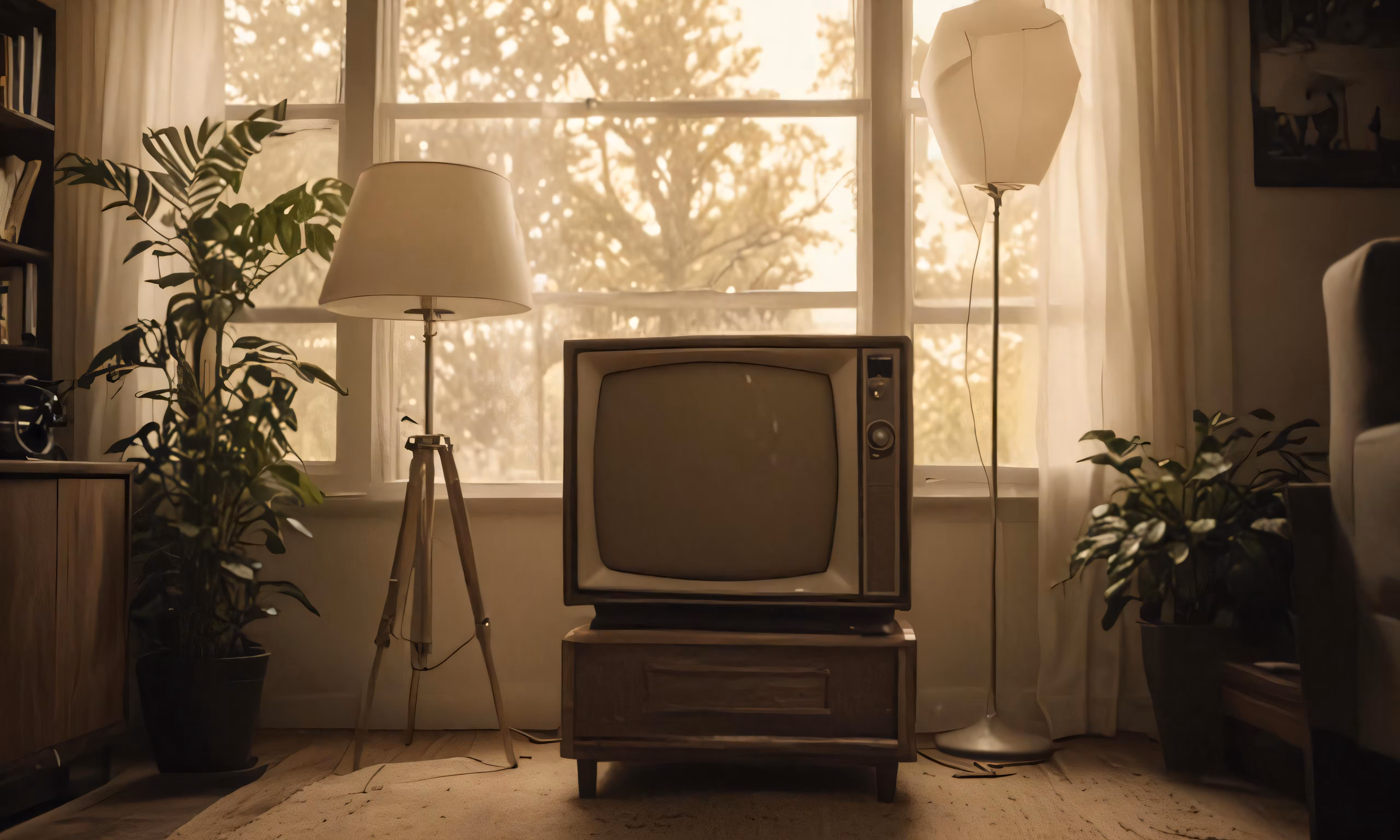 High resolution picture, free to use, a tv sitting inside of a room under a window
