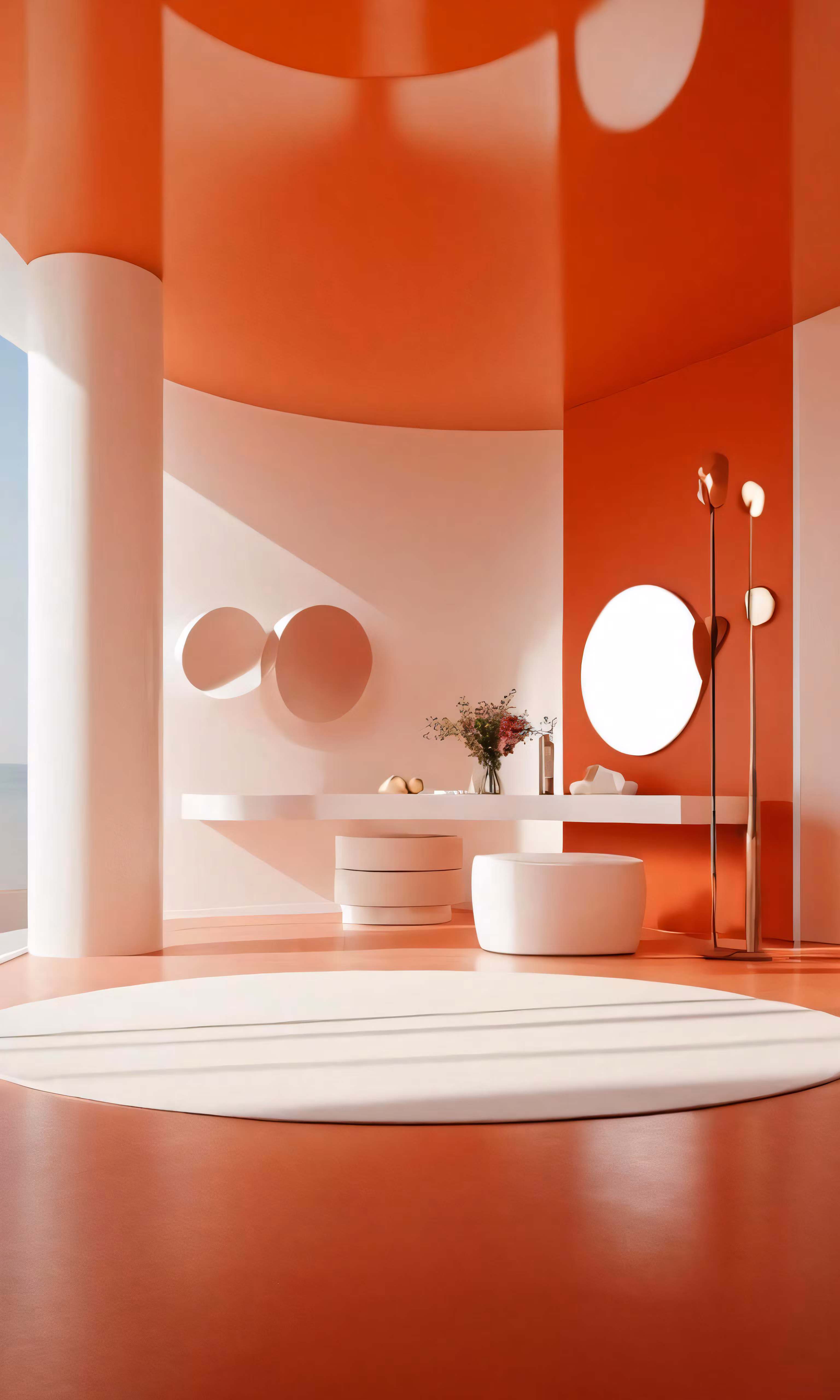 High resolution picture, free to use, a very bright room with red walls and two big mirrors
