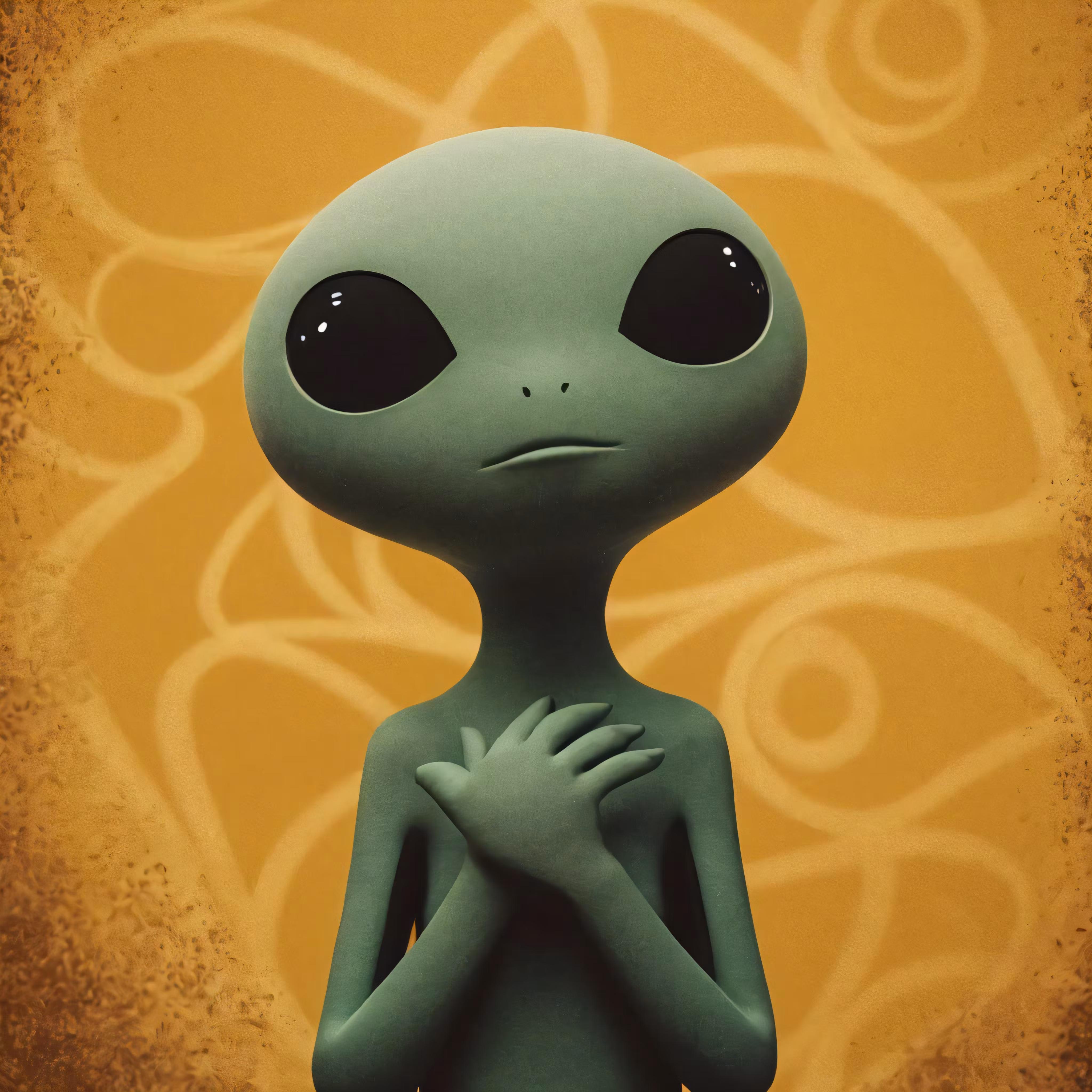 High resolution picture, free to use, a very cute looking alien on a yellow background