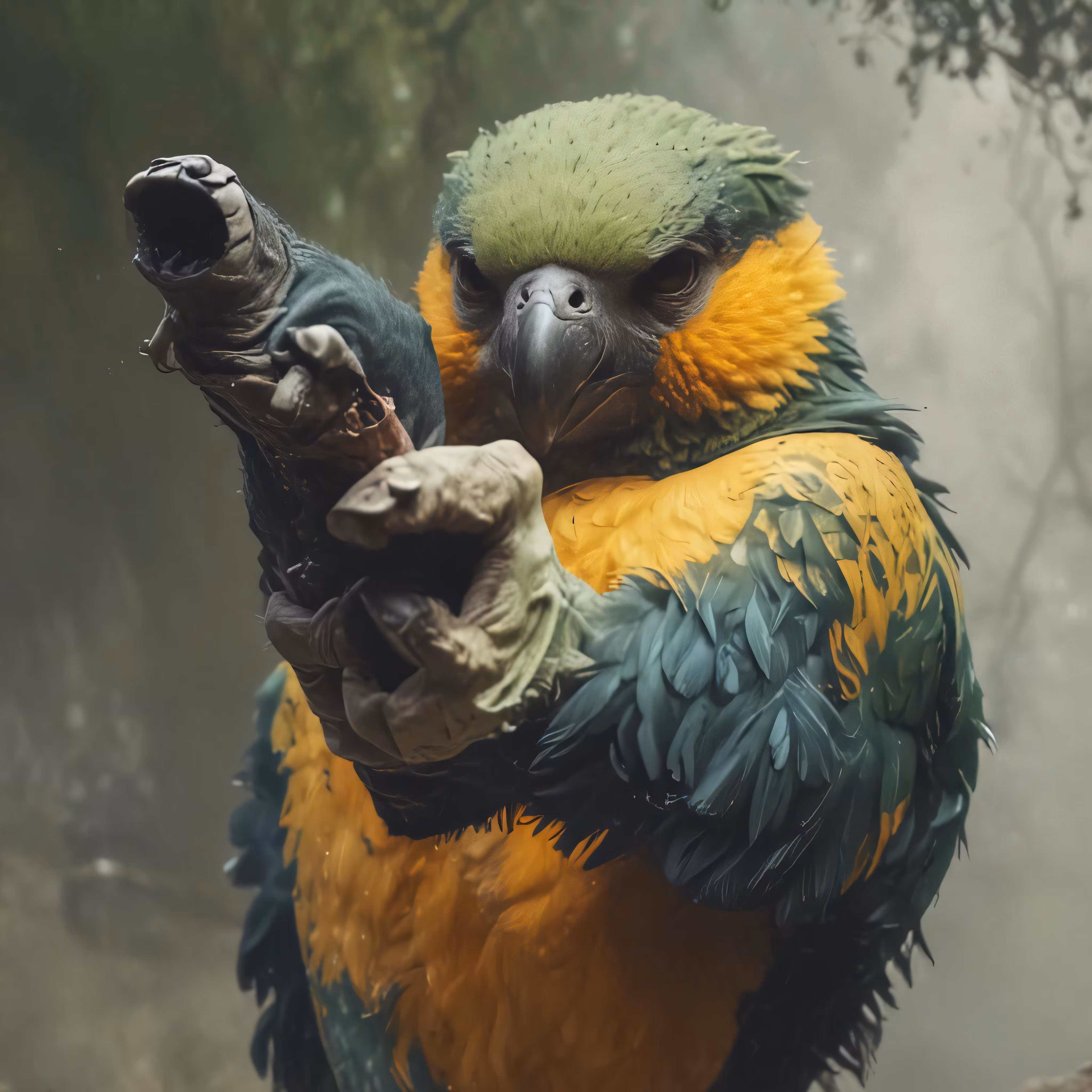 High resolution picture, free to use, a very cute looking colorful bird with claws in its mouth