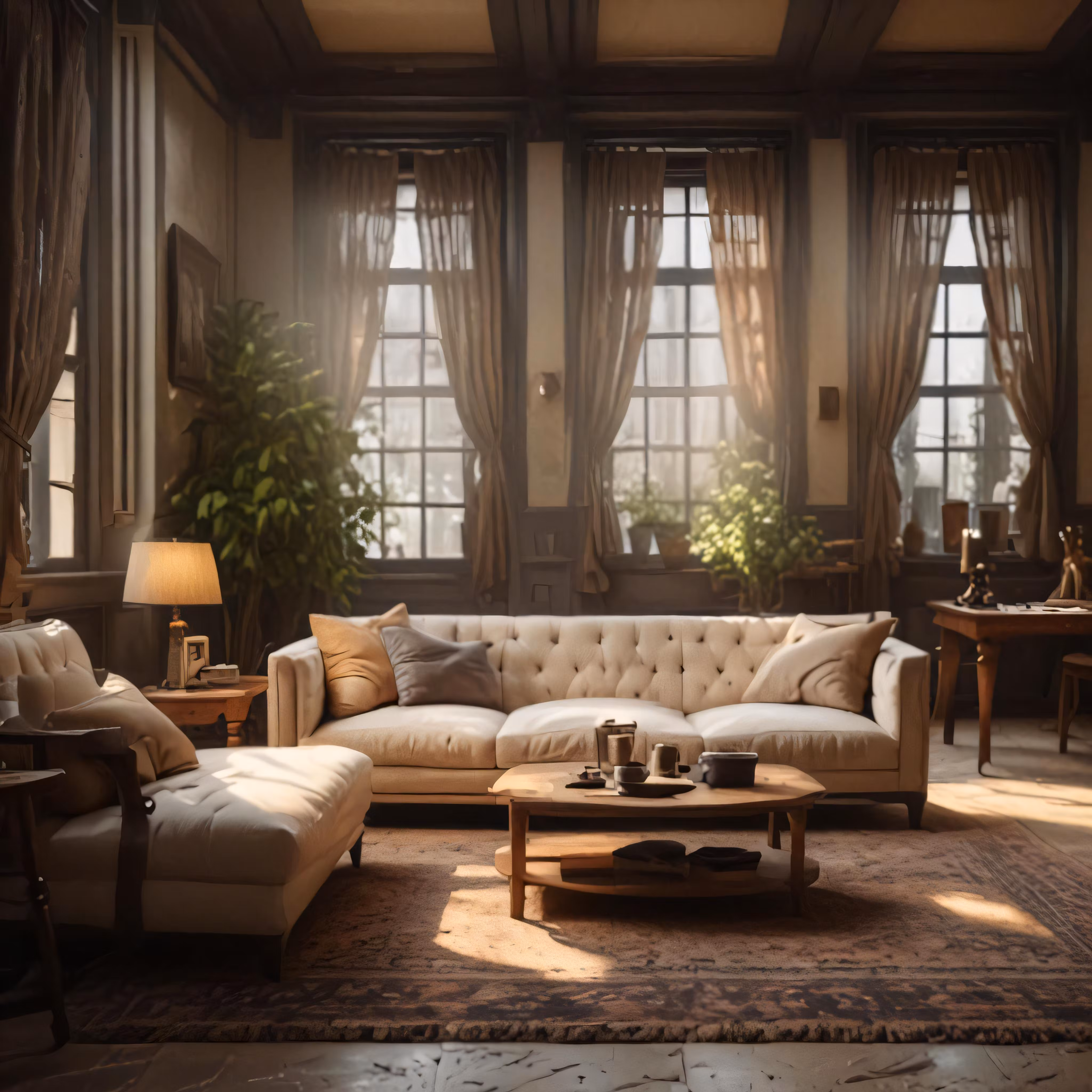High resolution picture, free to use, a very elegantly decorated living room is lit by the sunlight