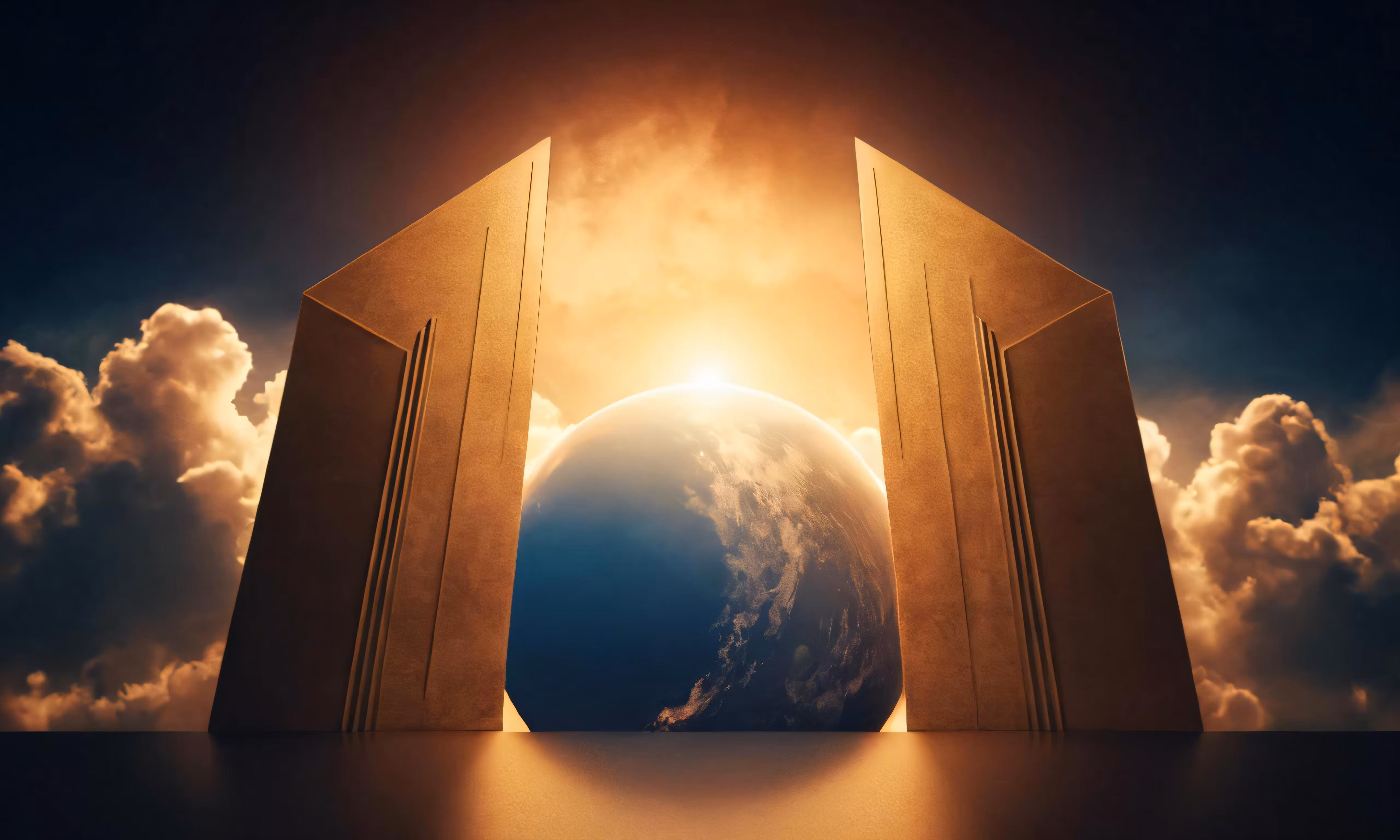 High resolution picture, free to use, a very large doorway opening up into a planet