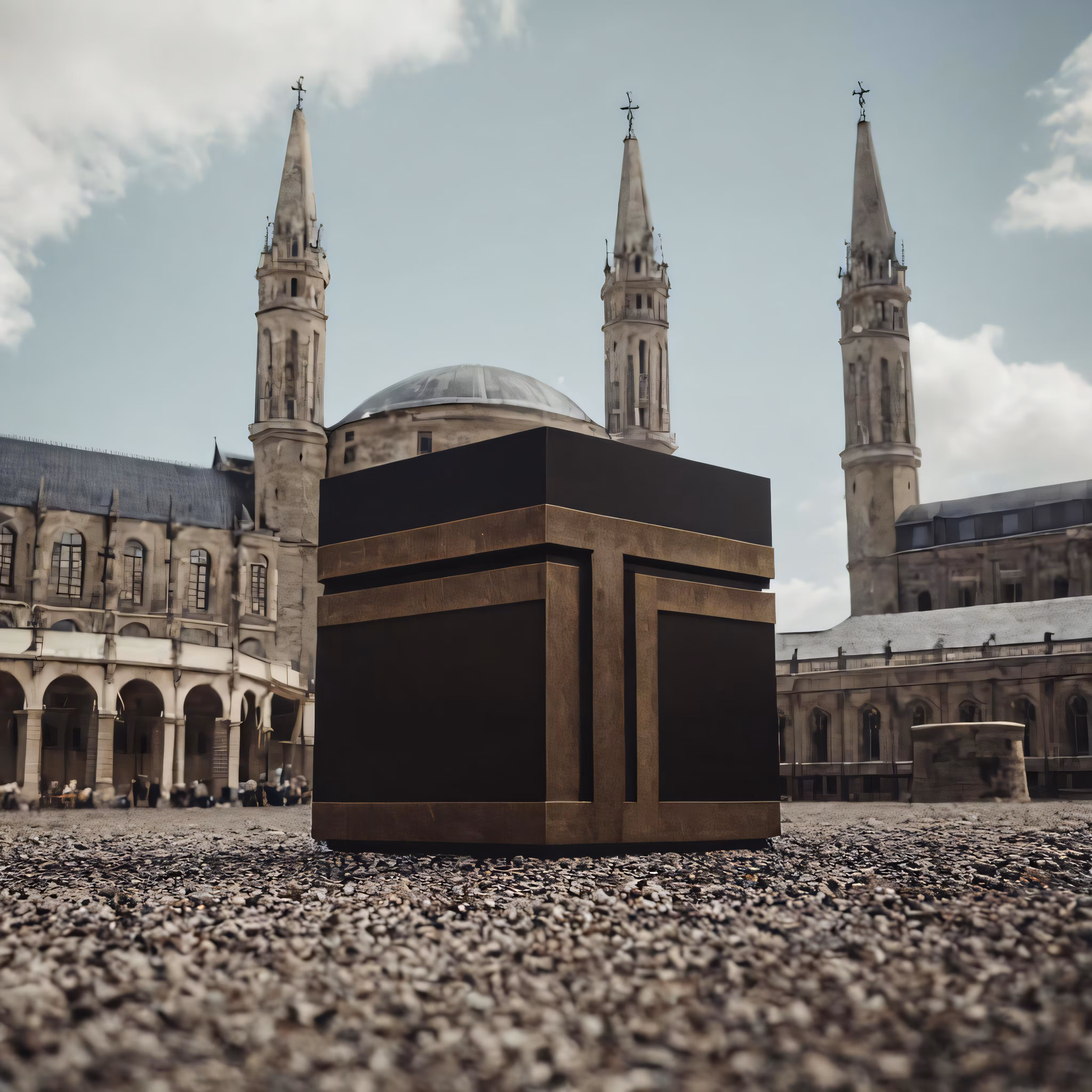 High resolution picture, free to use, a very large statue in front of some big buildings