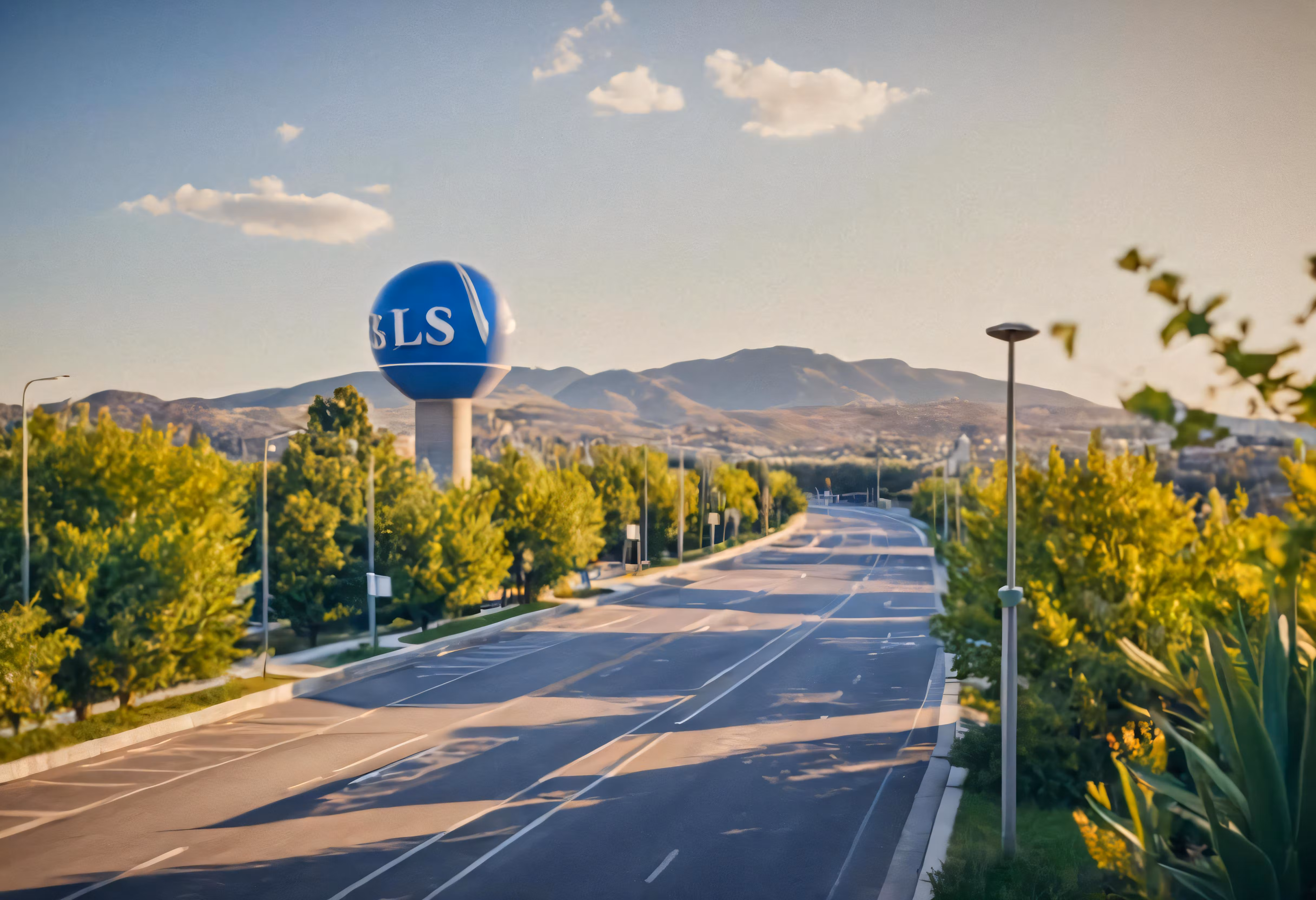 High resolution picture, free to use, a very long and empty road with a sign