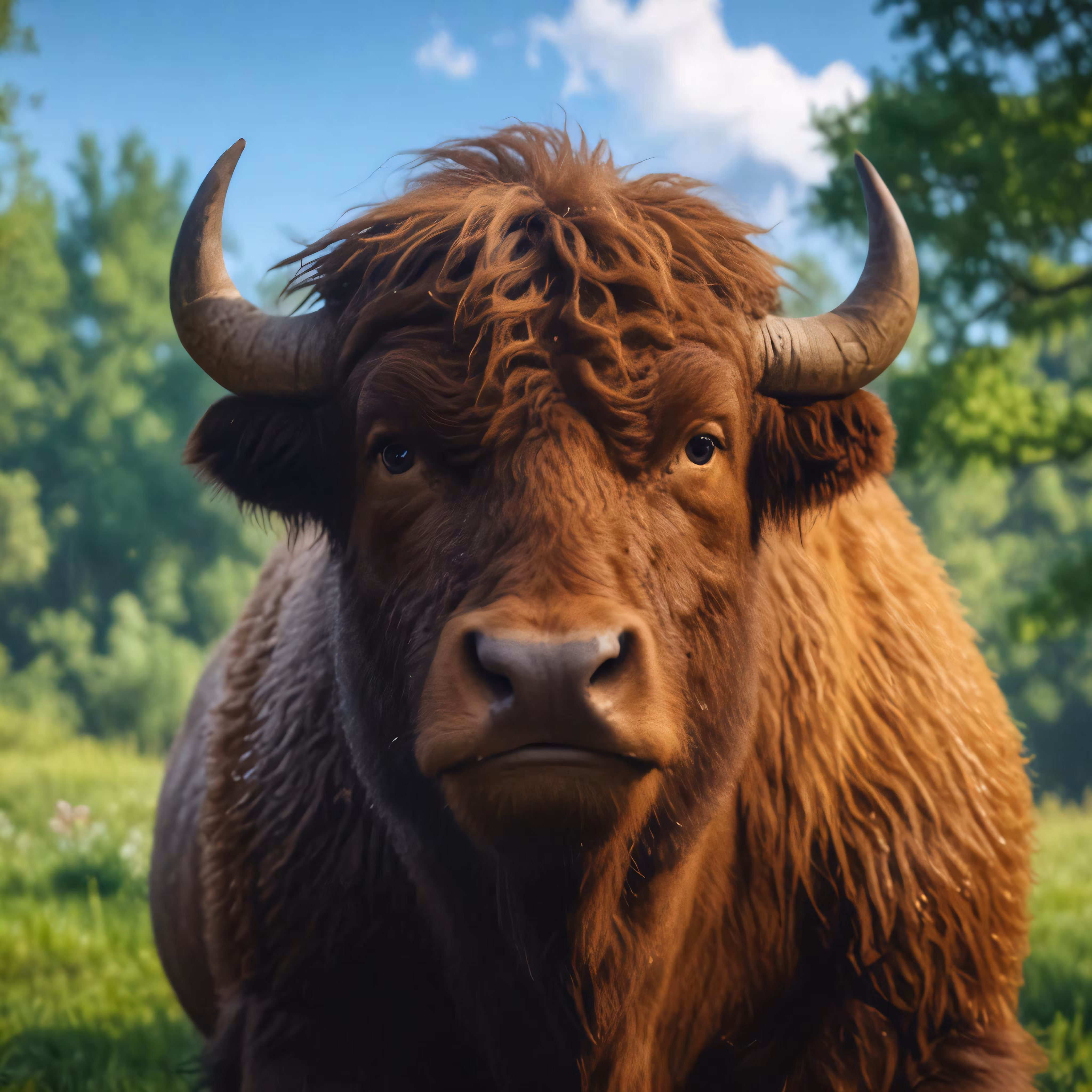 High resolution picture, free to use, a very long horned bull looks in the camera