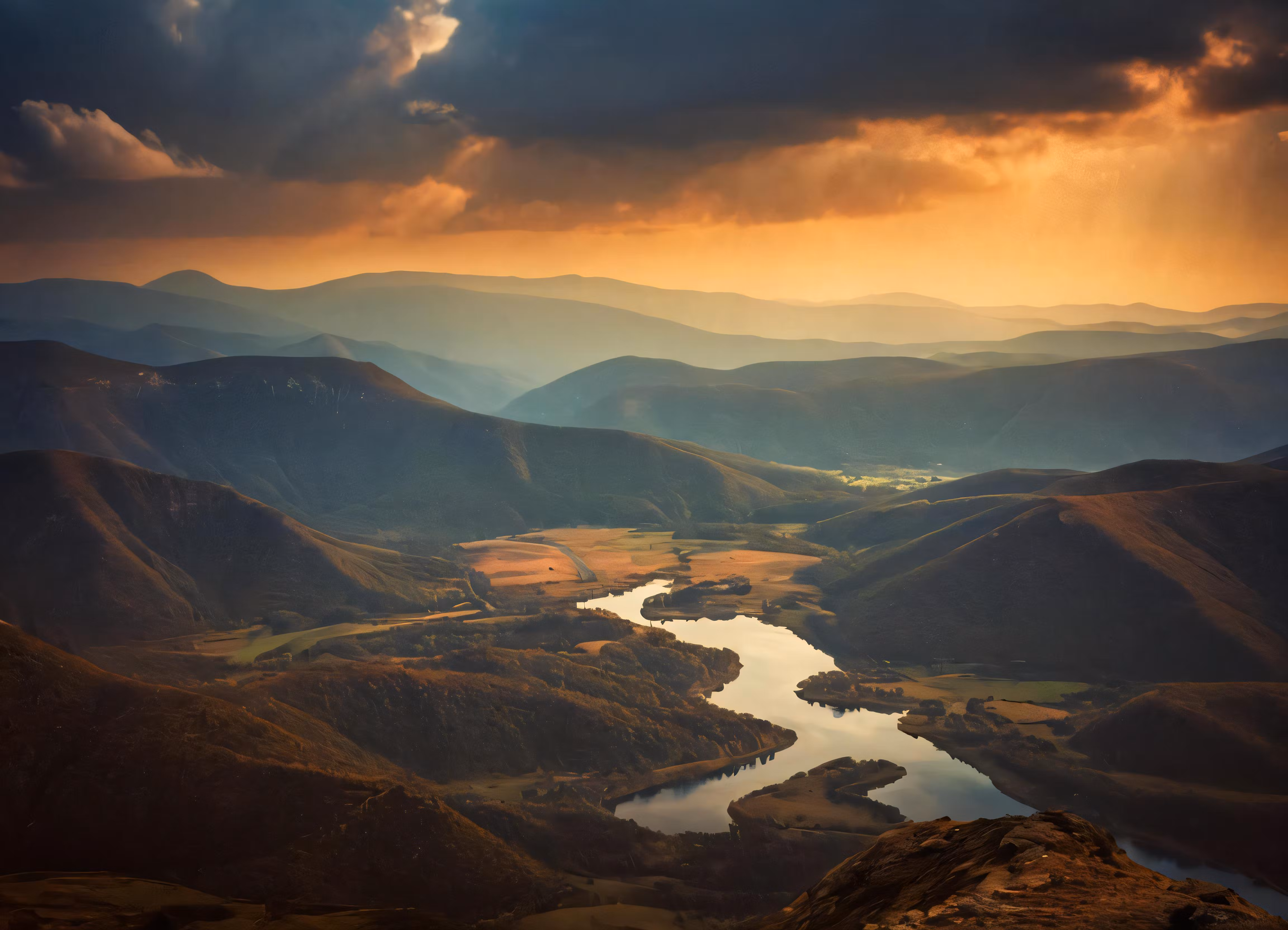 High resolution picture, free to use, a view of the mountains and valleys at sunset