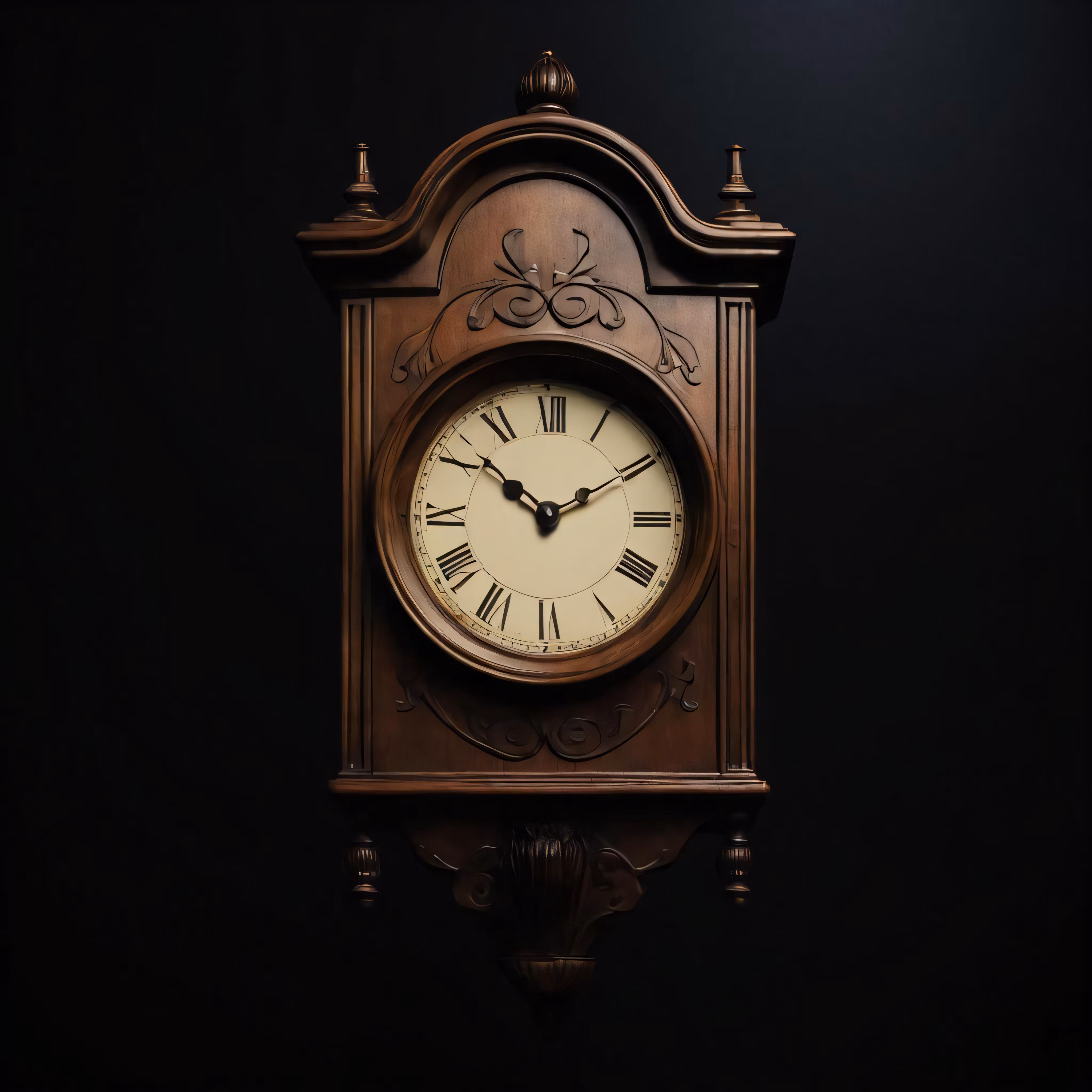 High resolution picture, free to use, a wall clock with ornate carvings and roman numerals