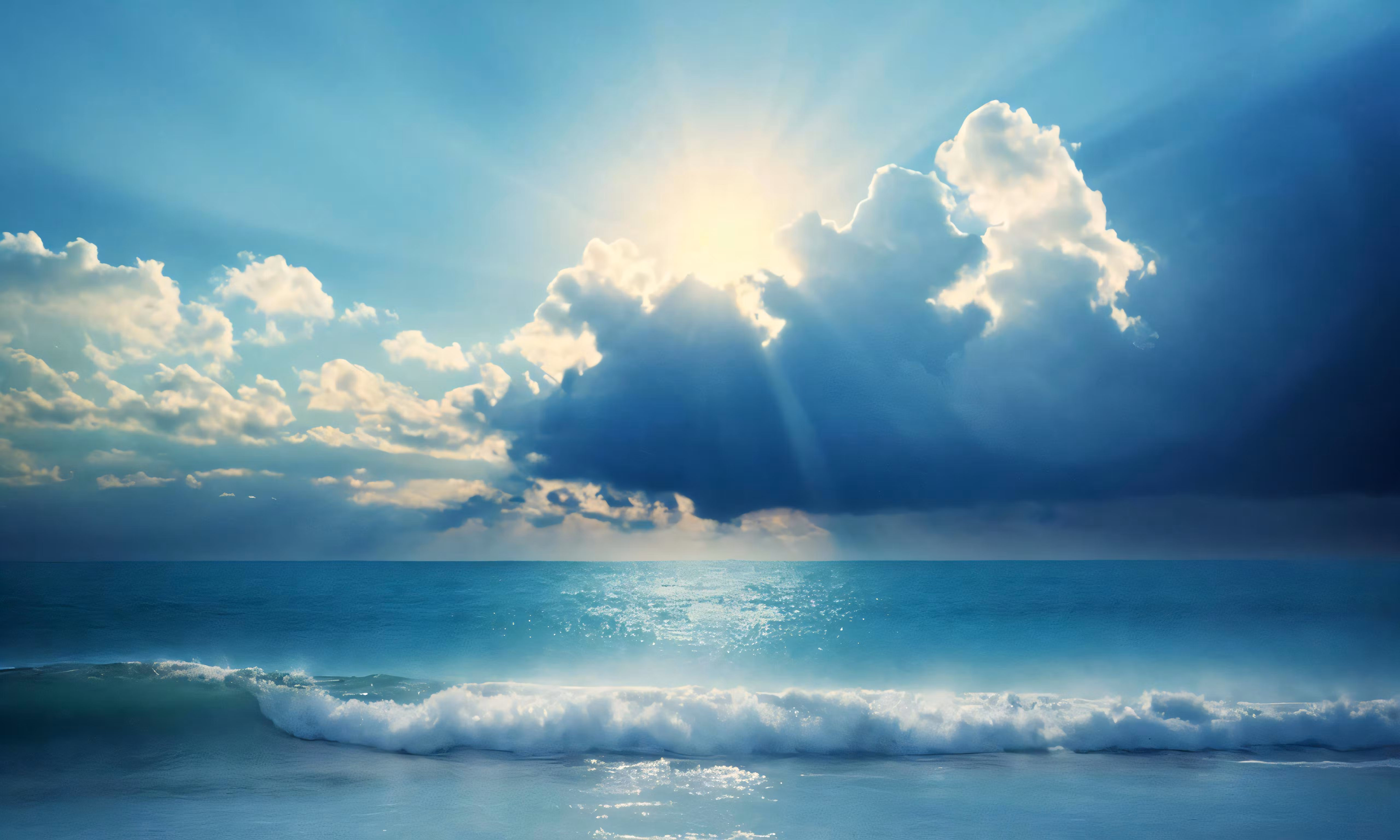 High resolution picture, free to use, a wave is breaking into the ocean, and is sun rays shining