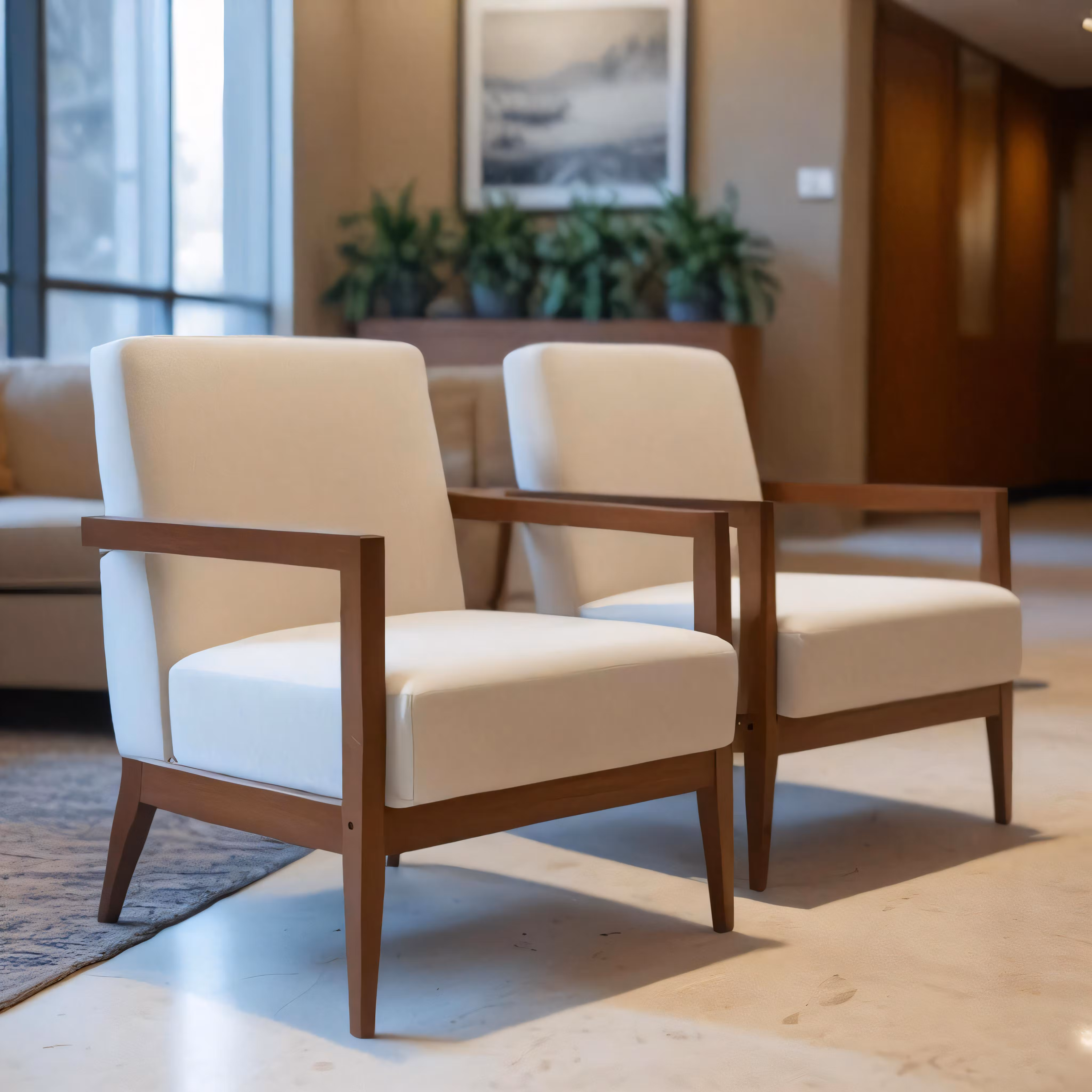 High resolution picture, free to use, a white and wood chair is in an office