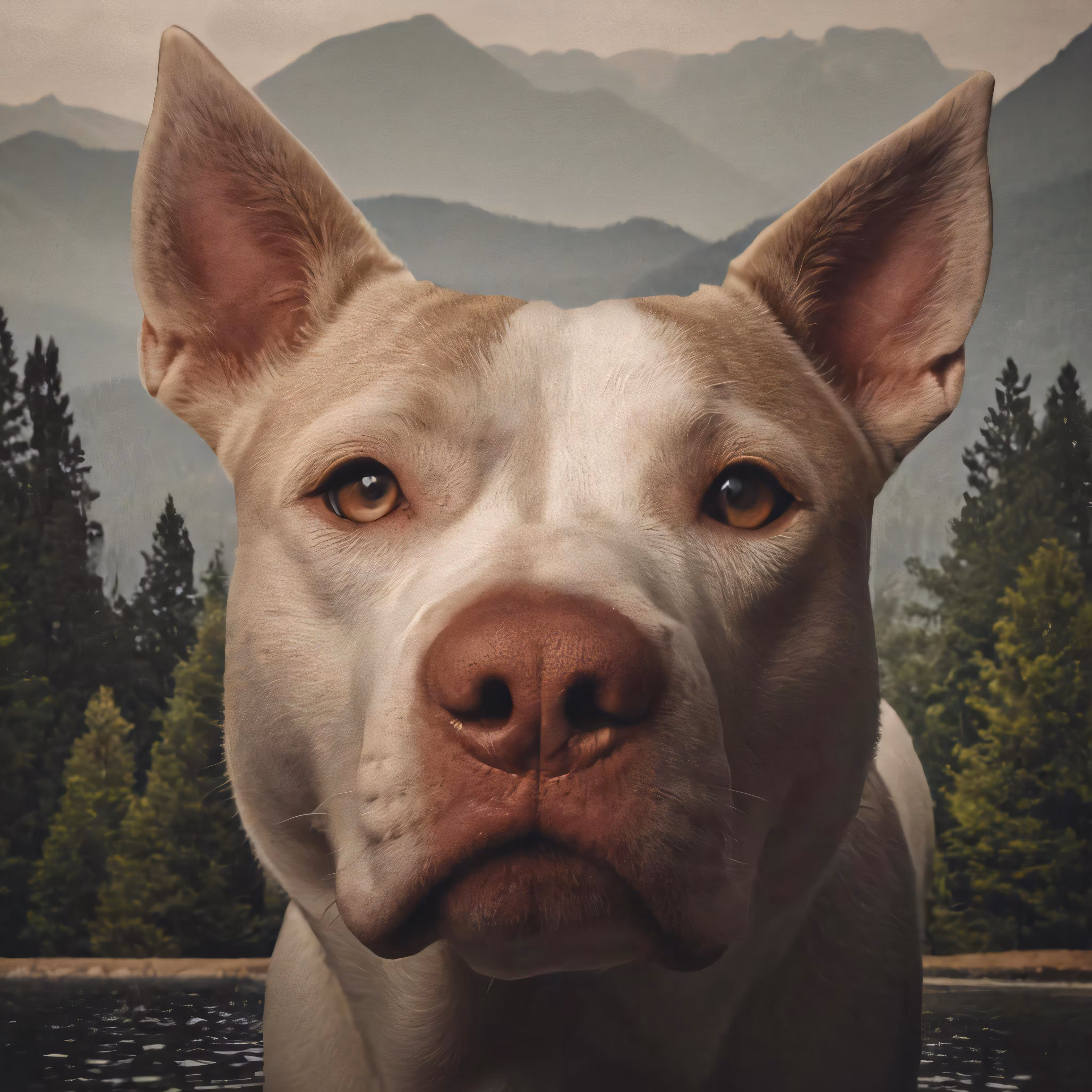 High resolution picture, free to use, a white dog with blue eyes is looking directly at the camera