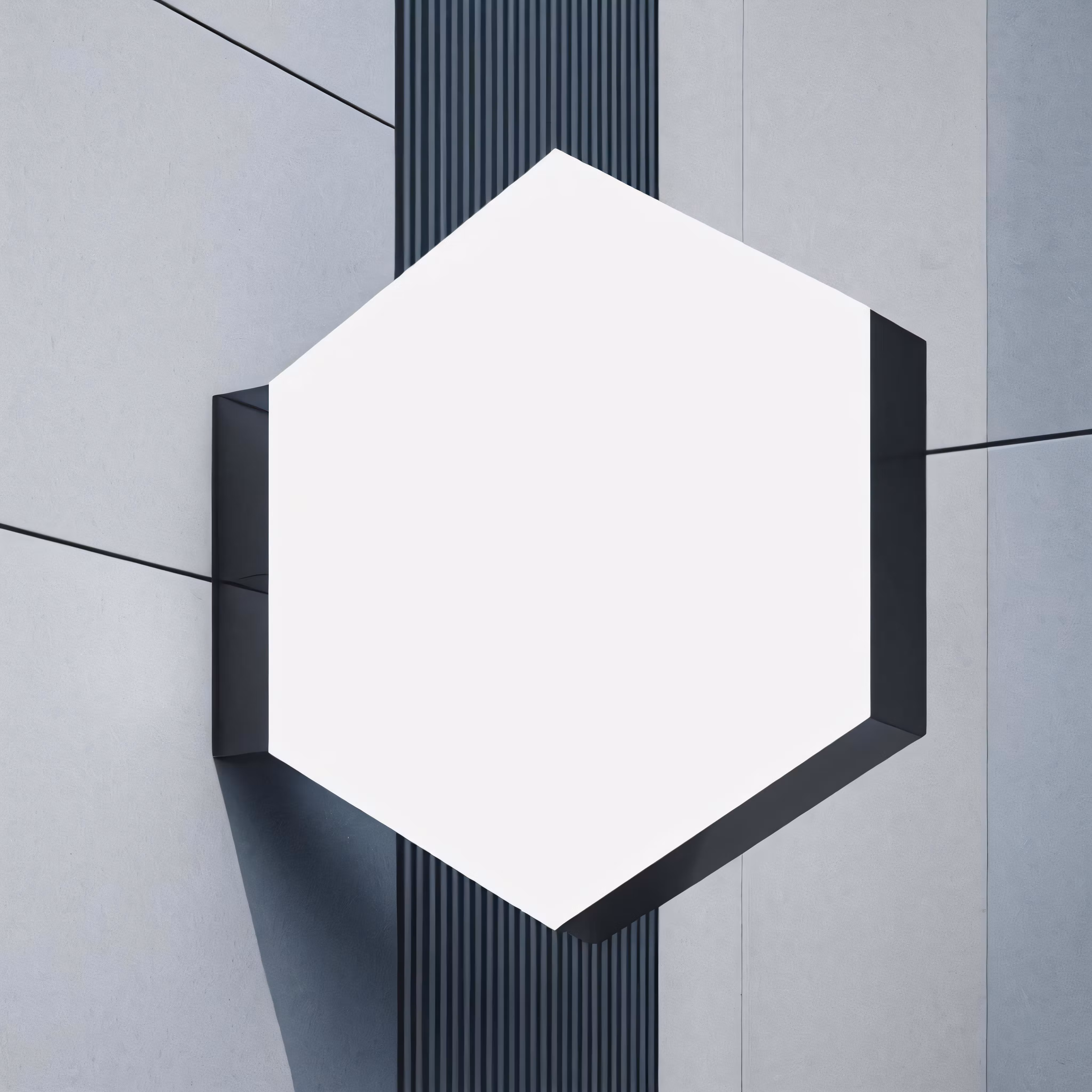 High resolution picture, free to use, a white hexagonal object on the side of the building