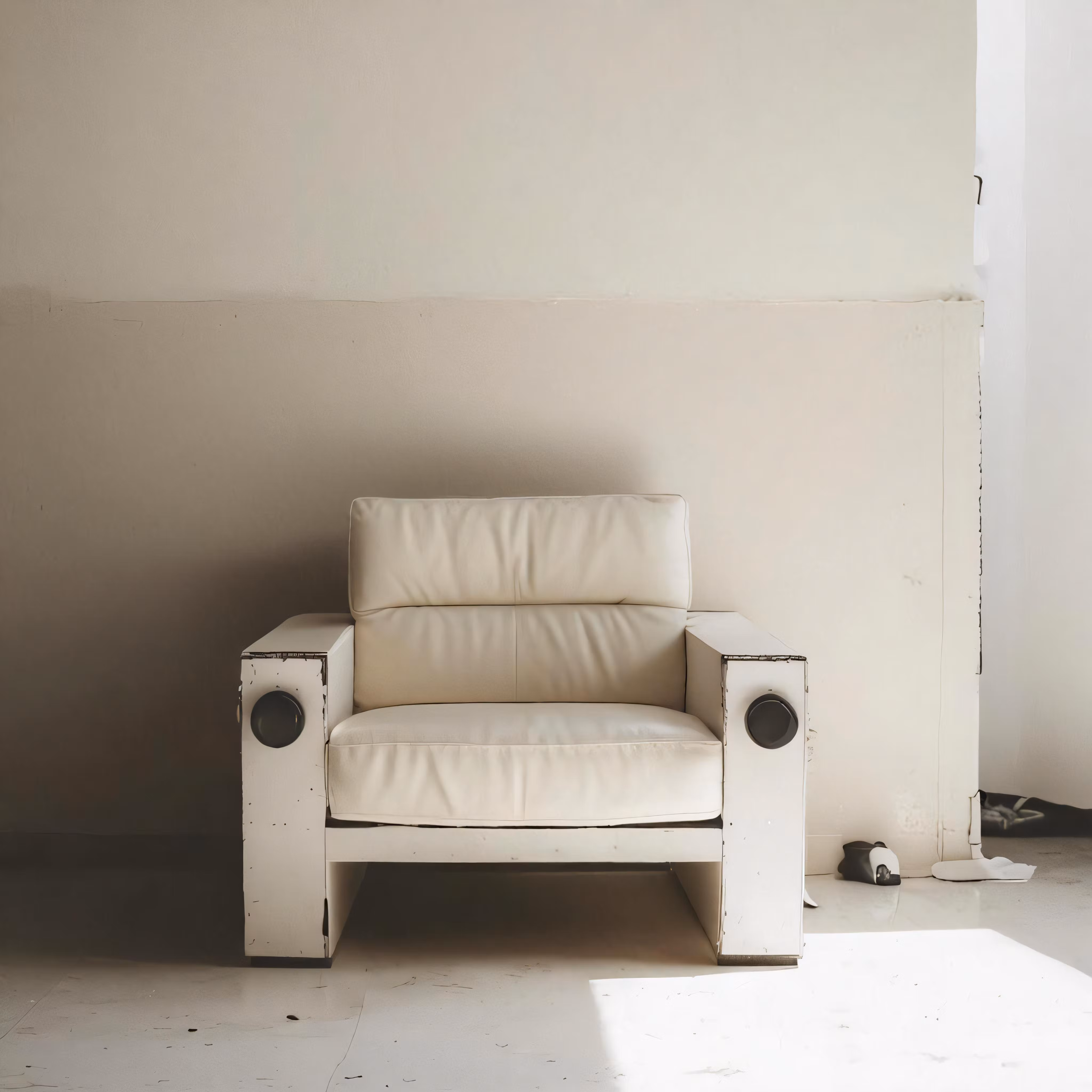 High resolution picture, free to use, a white leather chair sitting in an empty room