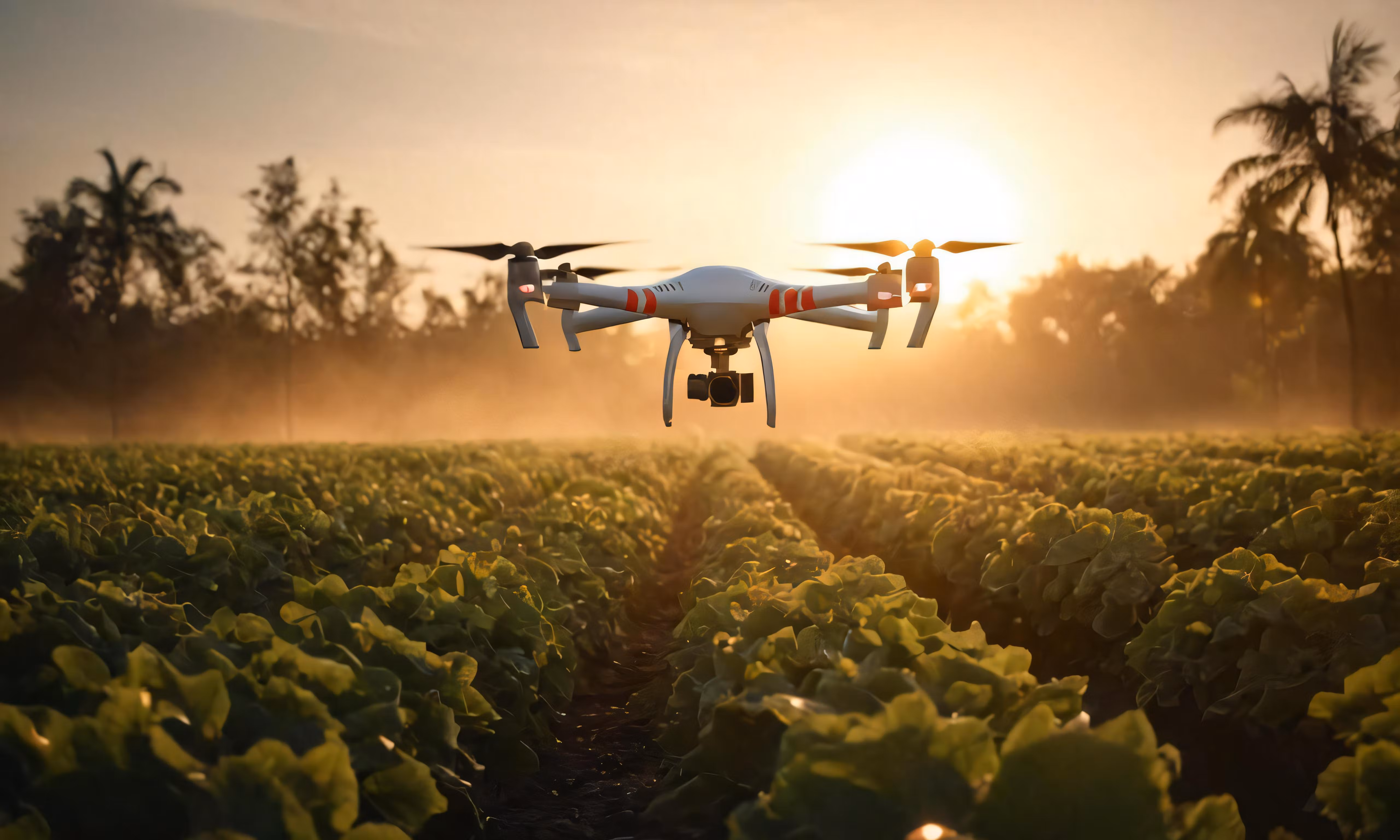 High resolution picture, free to use, a white quad cop holding two large propellers in the middle of green field