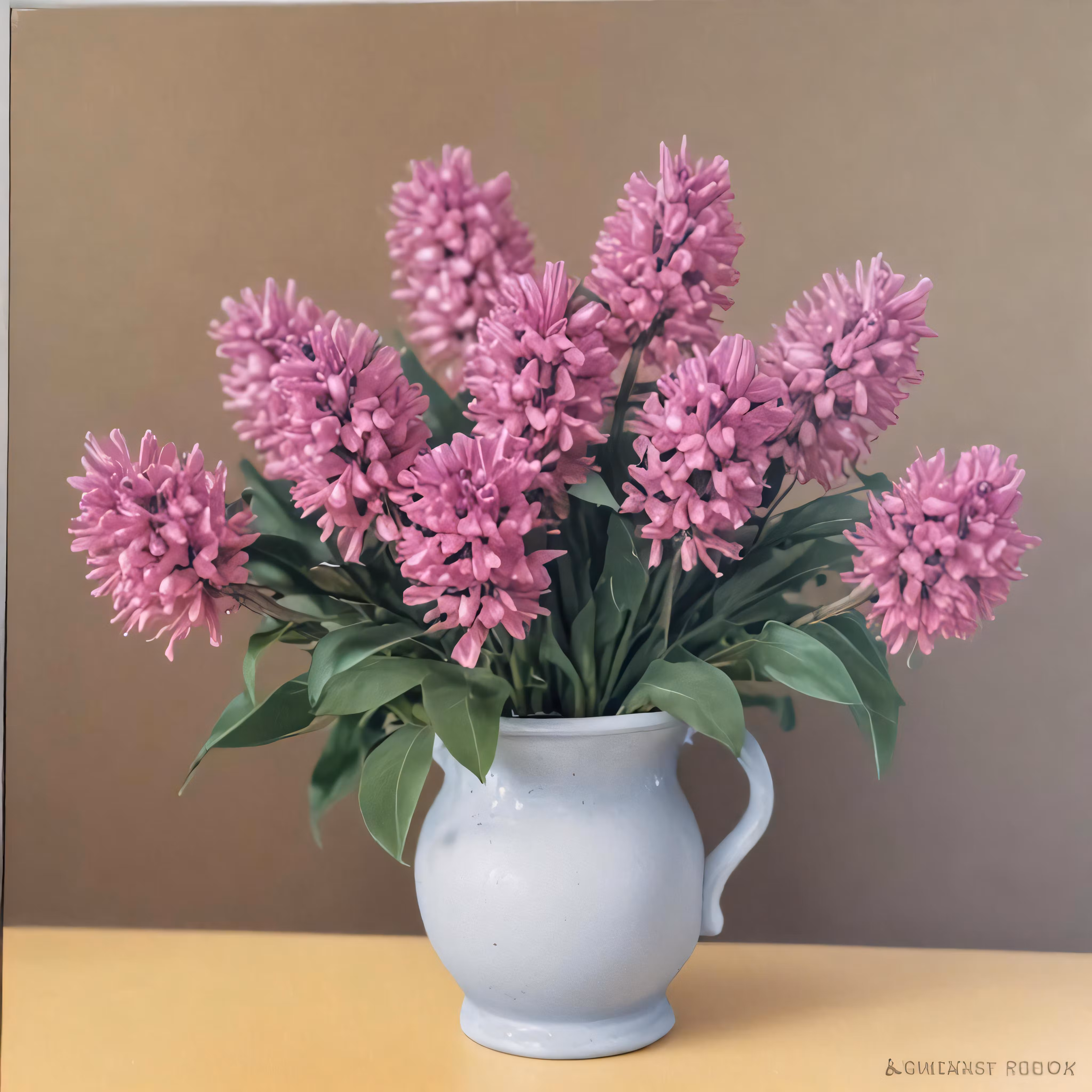 High resolution picture, free to use, a white vase with some pink flowers in it