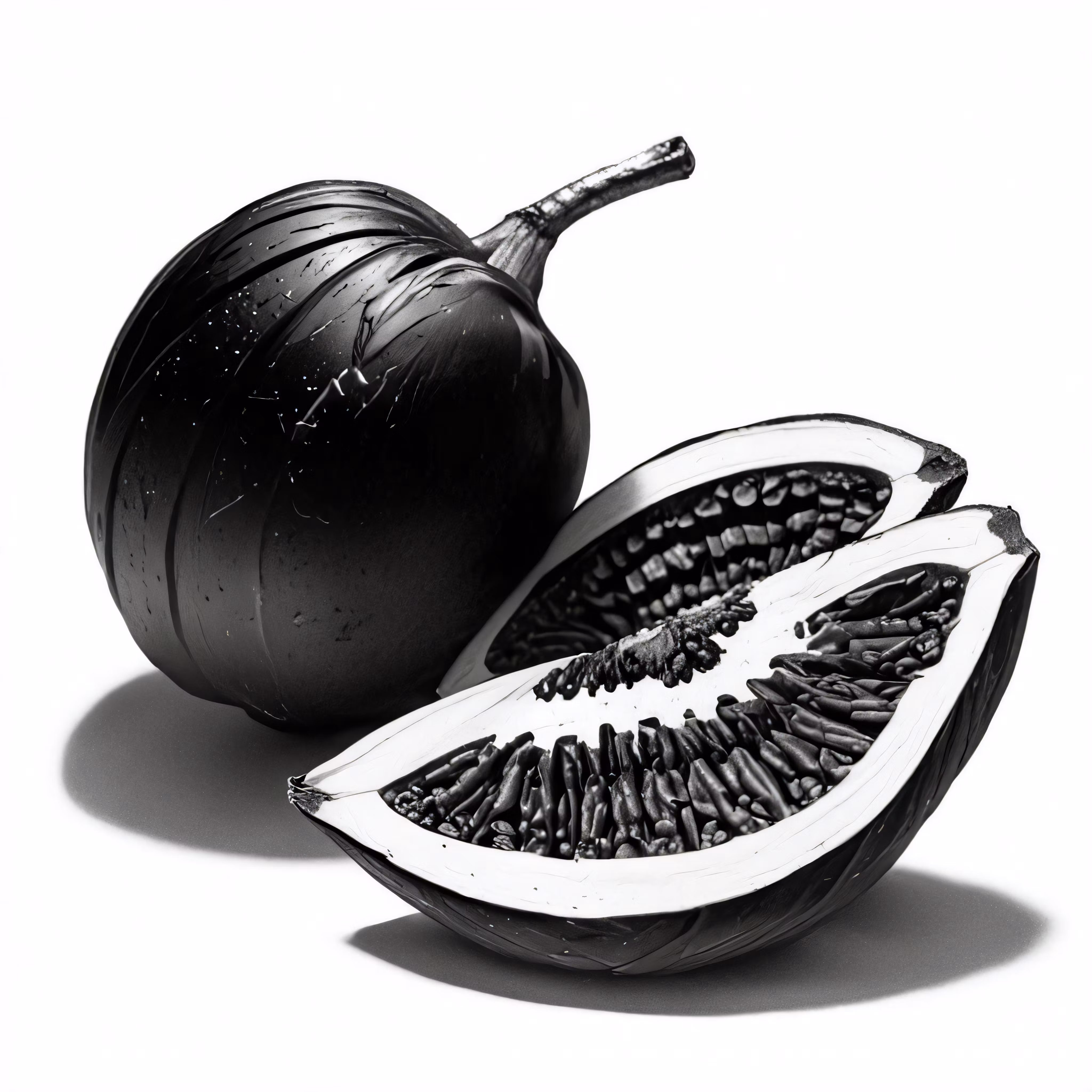 High resolution picture, free to use, a whole and halved papaya fruit sits in front of a whole and half peeled papaya