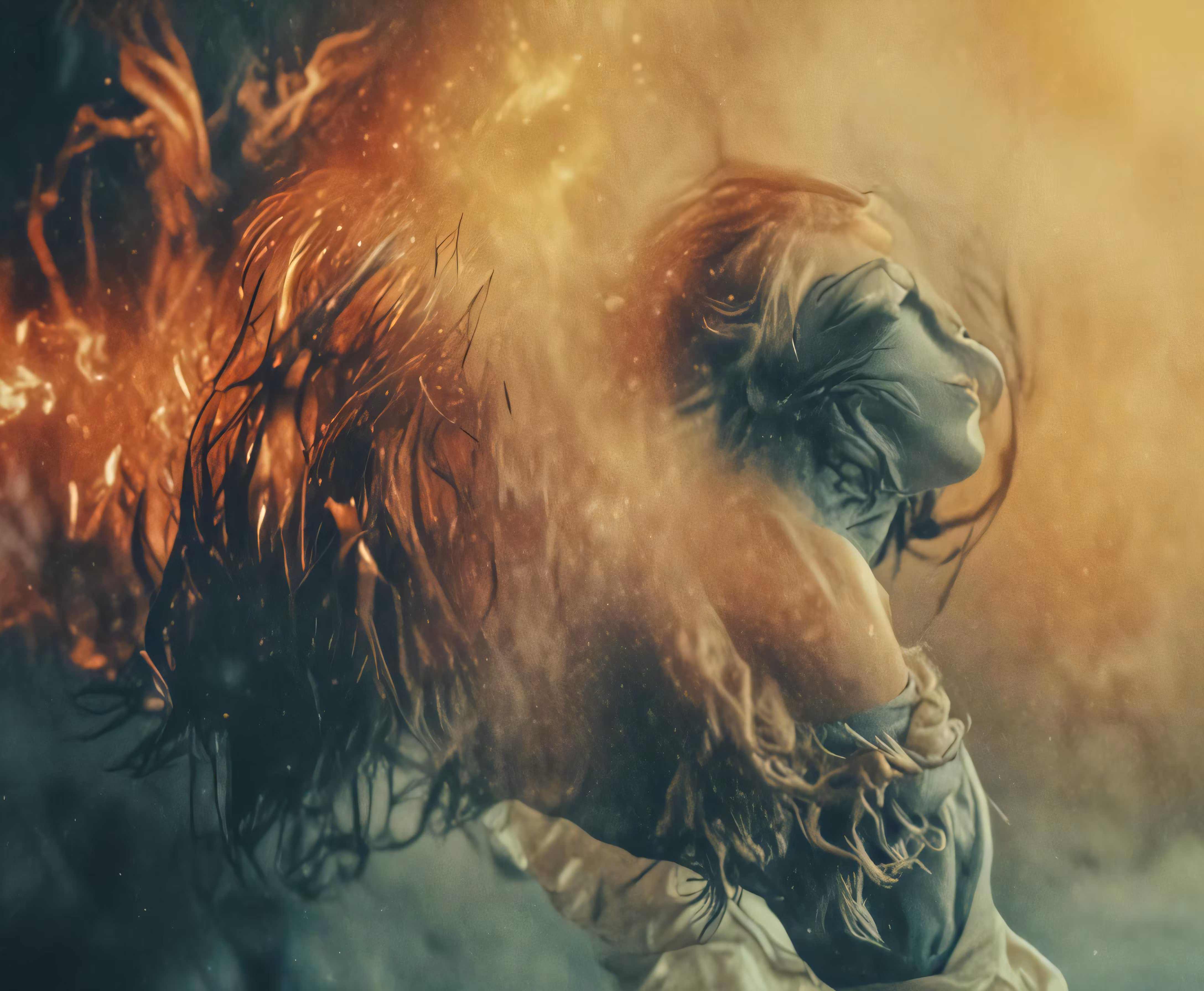 High resolution picture, free to use, a woman dancing in the midst of flames
