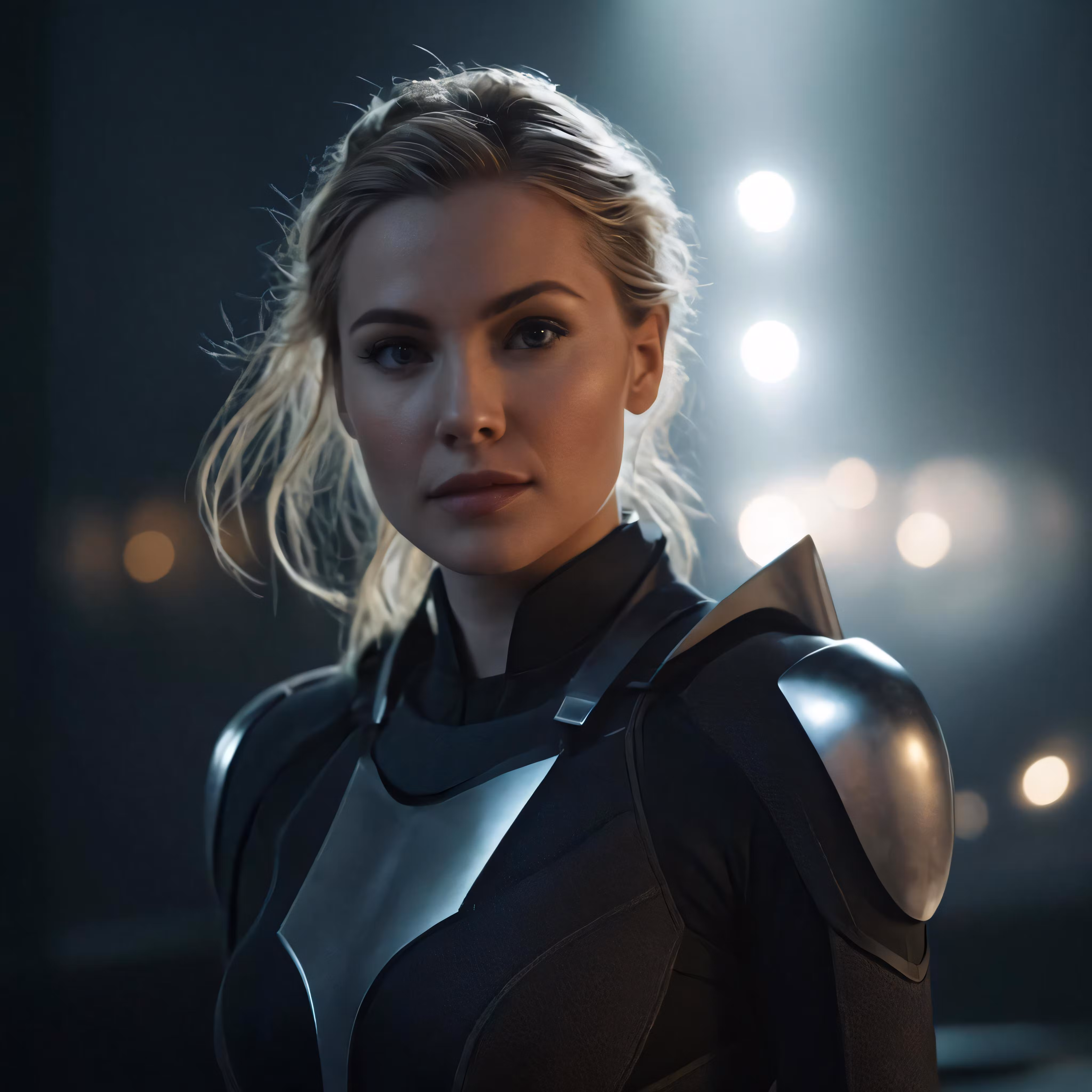 High resolution picture, free to use, a woman dressed as the flash is posing for the camera