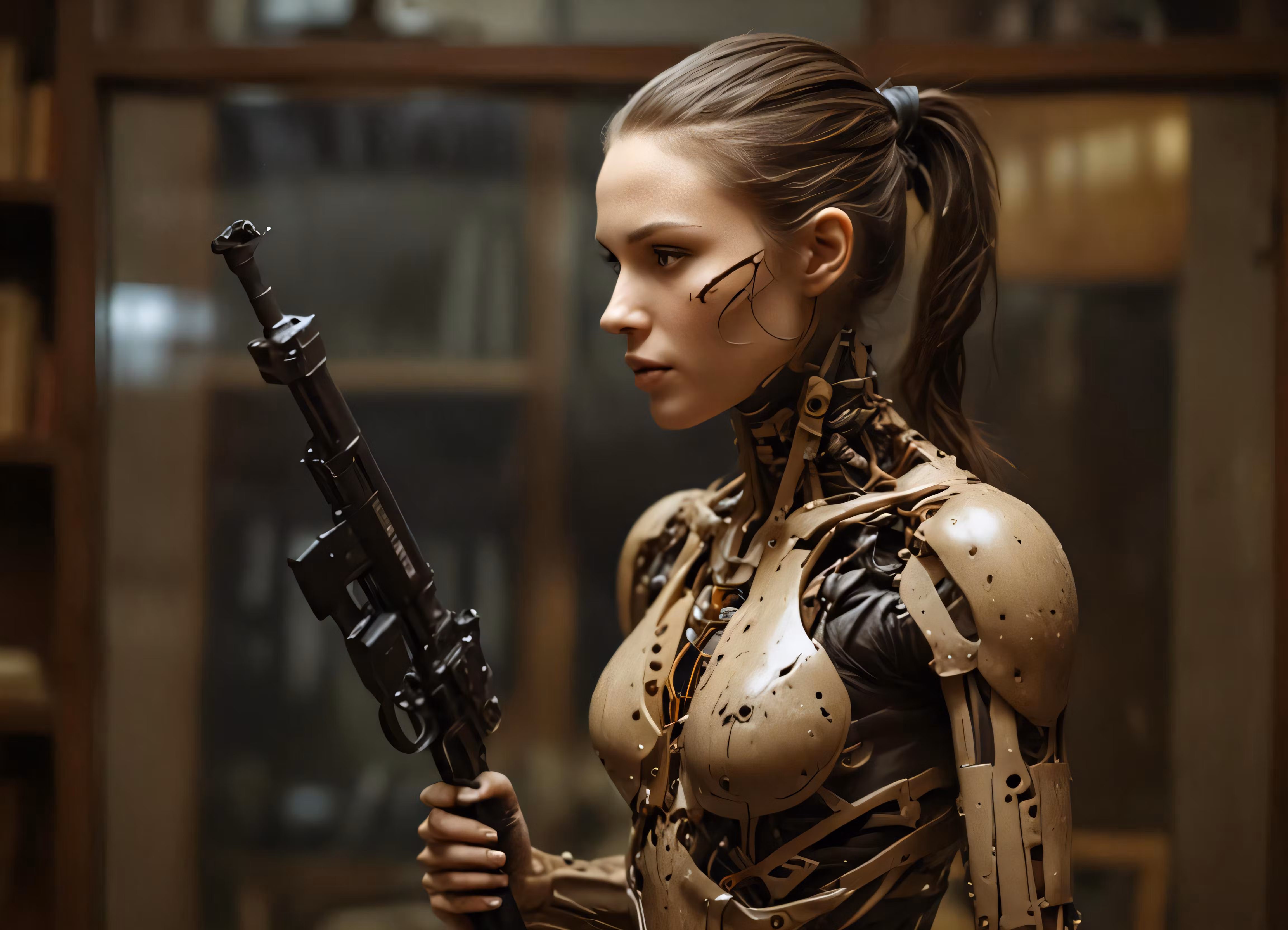 High resolution picture, free to use, a woman dressed in body paint holding a gun