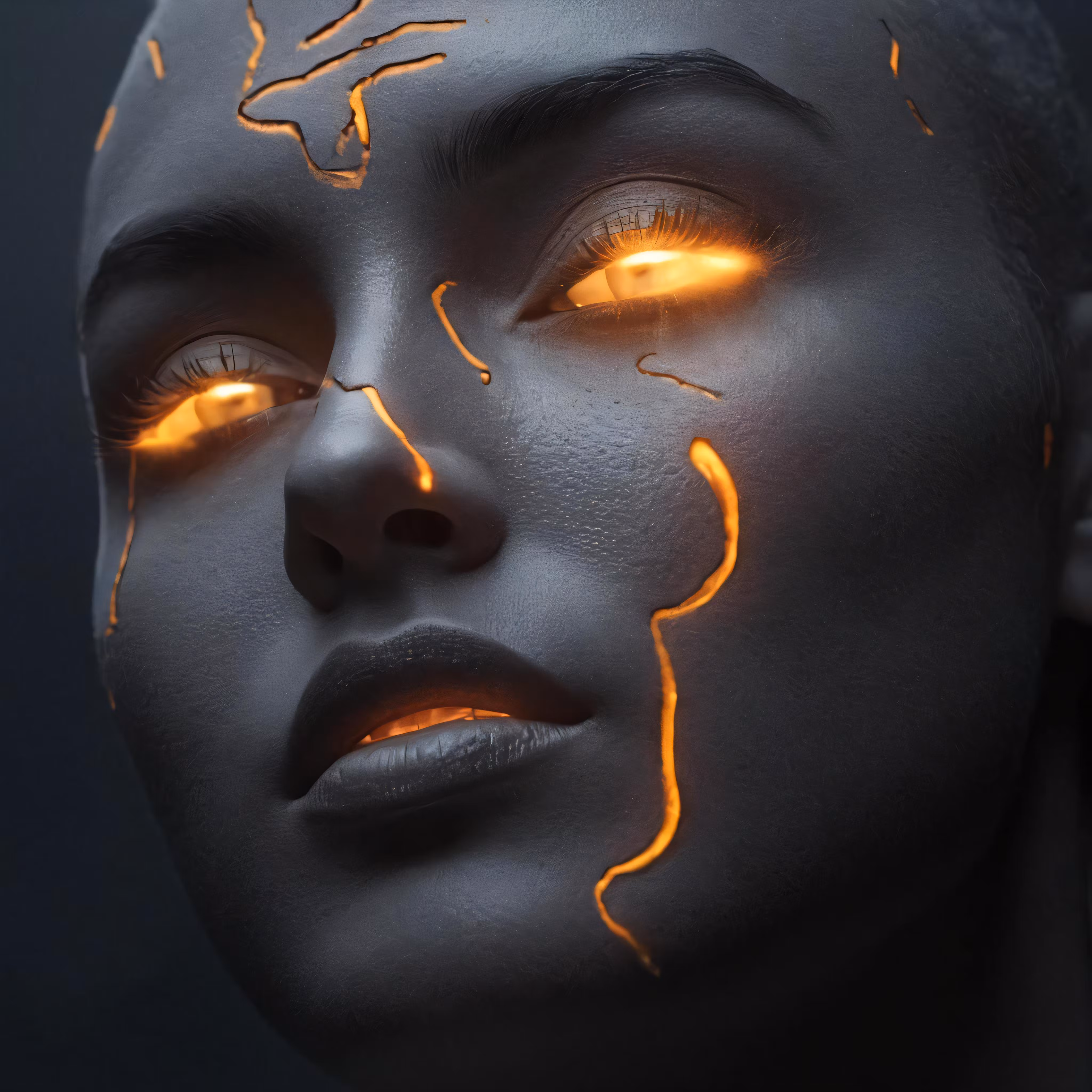 High resolution picture, free to use, a woman has glowing face paint all around her