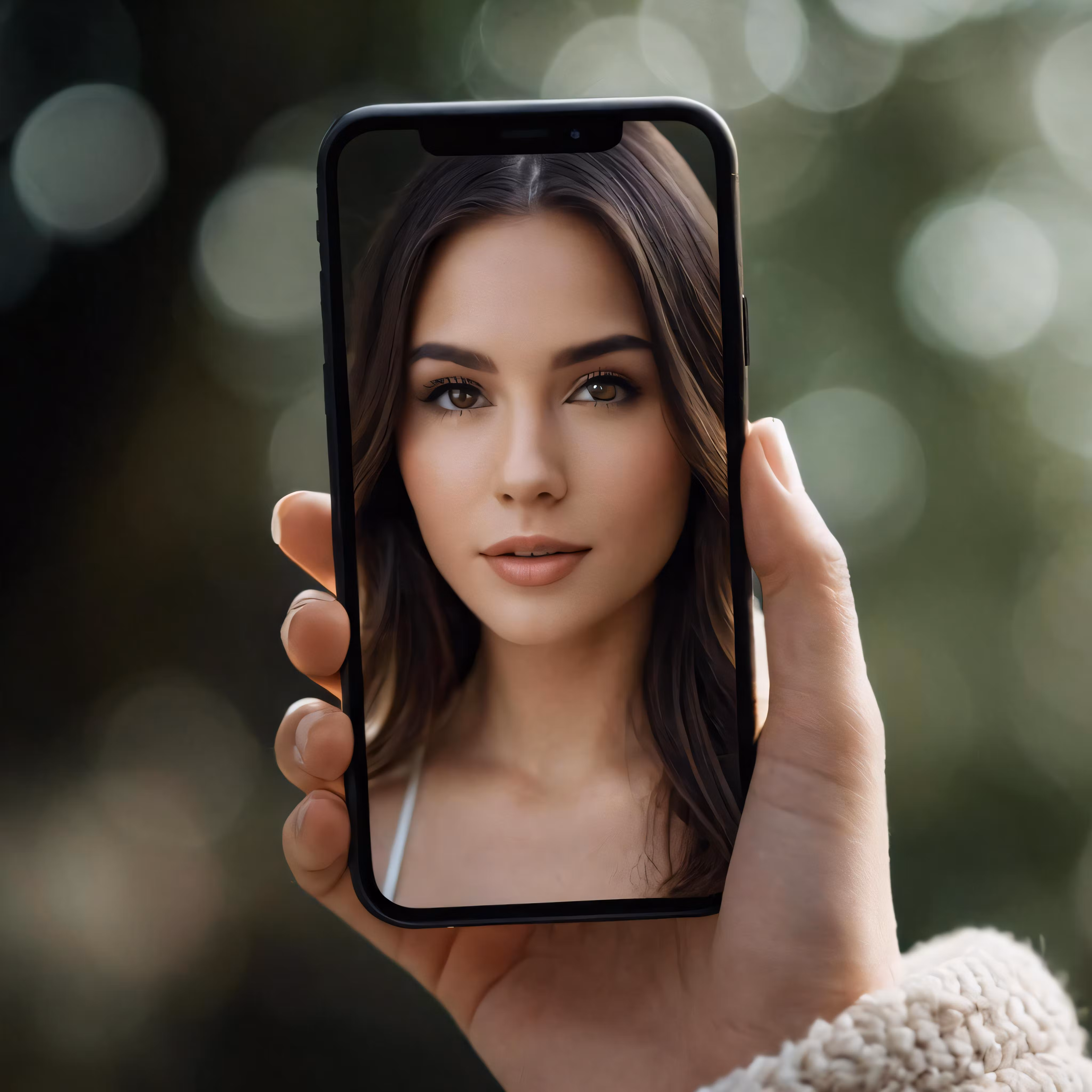High resolution picture, free to use, a woman holding up a mirror to take a selfie