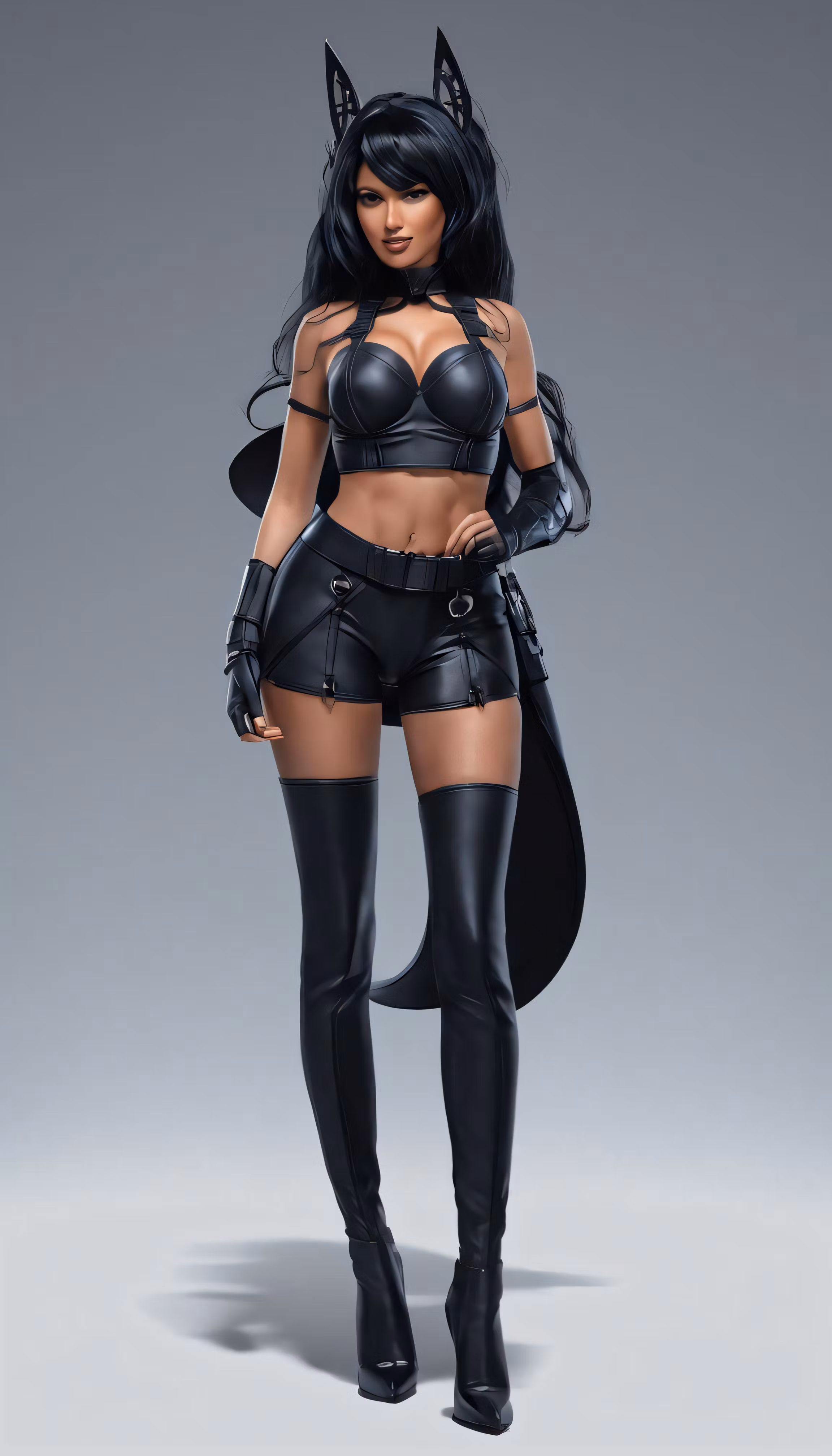 High resolution picture, free to use, a woman in a cat costume with leather clothes and boots