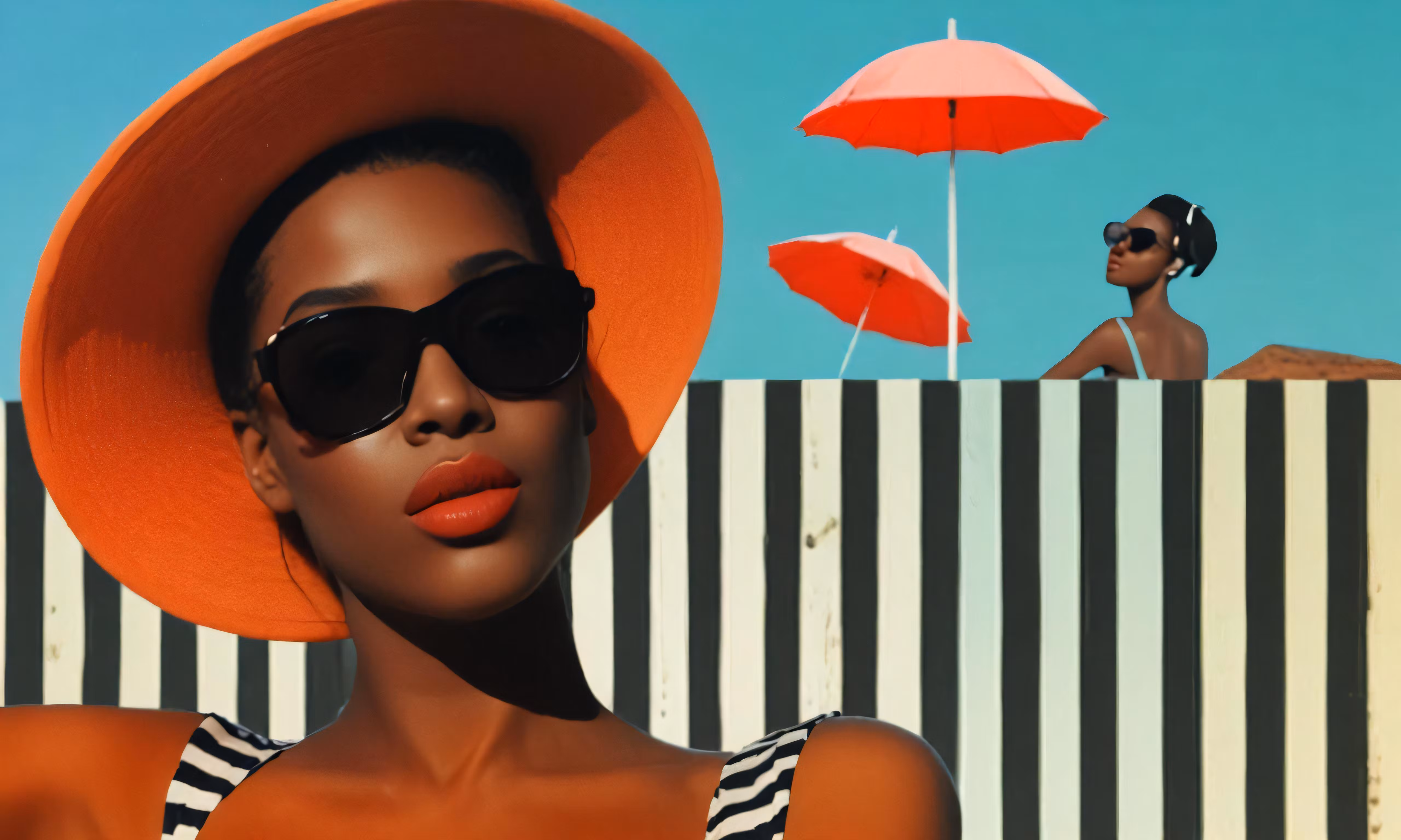 High resolution picture, free to use, a woman in a orange hat and sunglasses