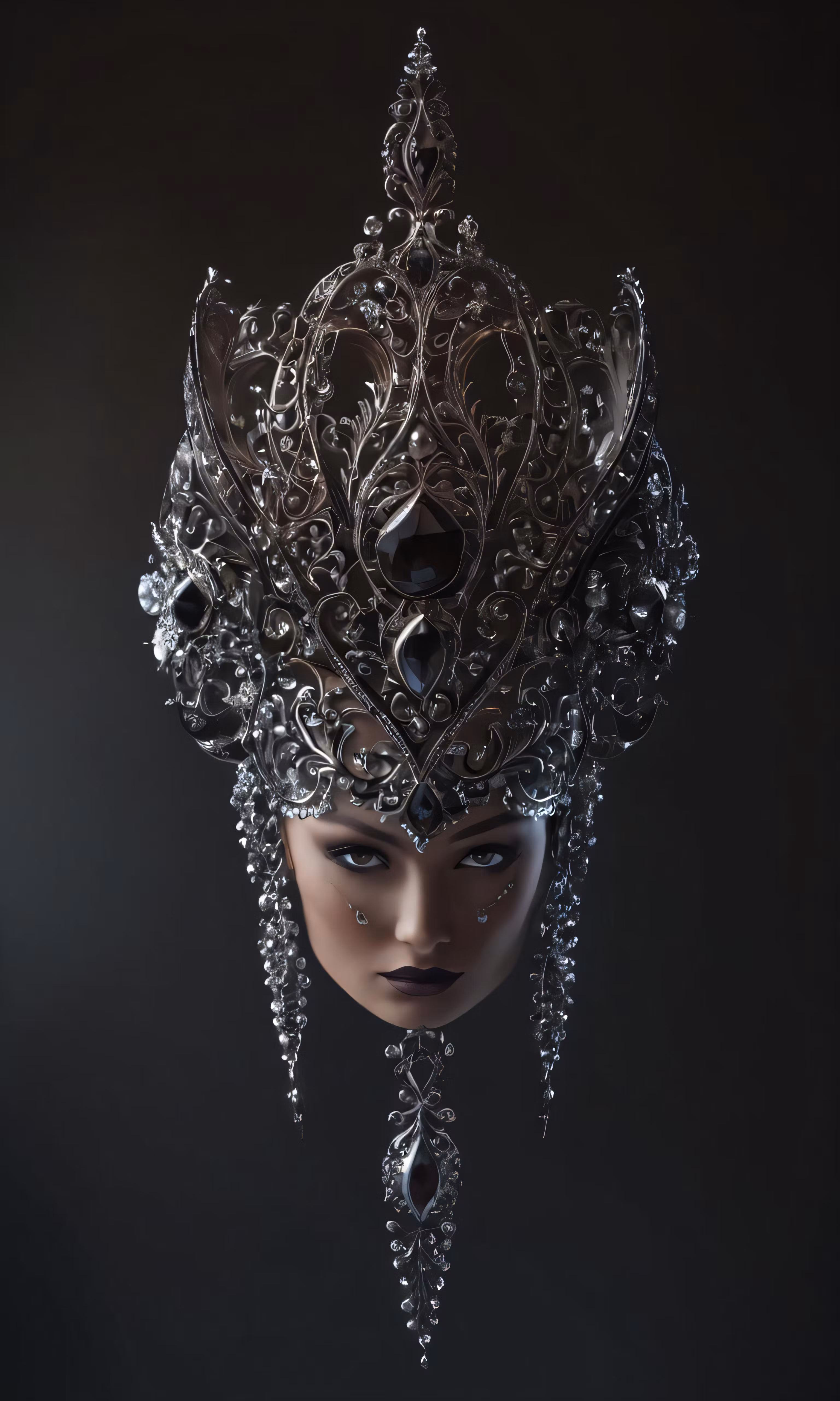 High resolution picture, free to use, a woman in an ornate headdress with crystal accents