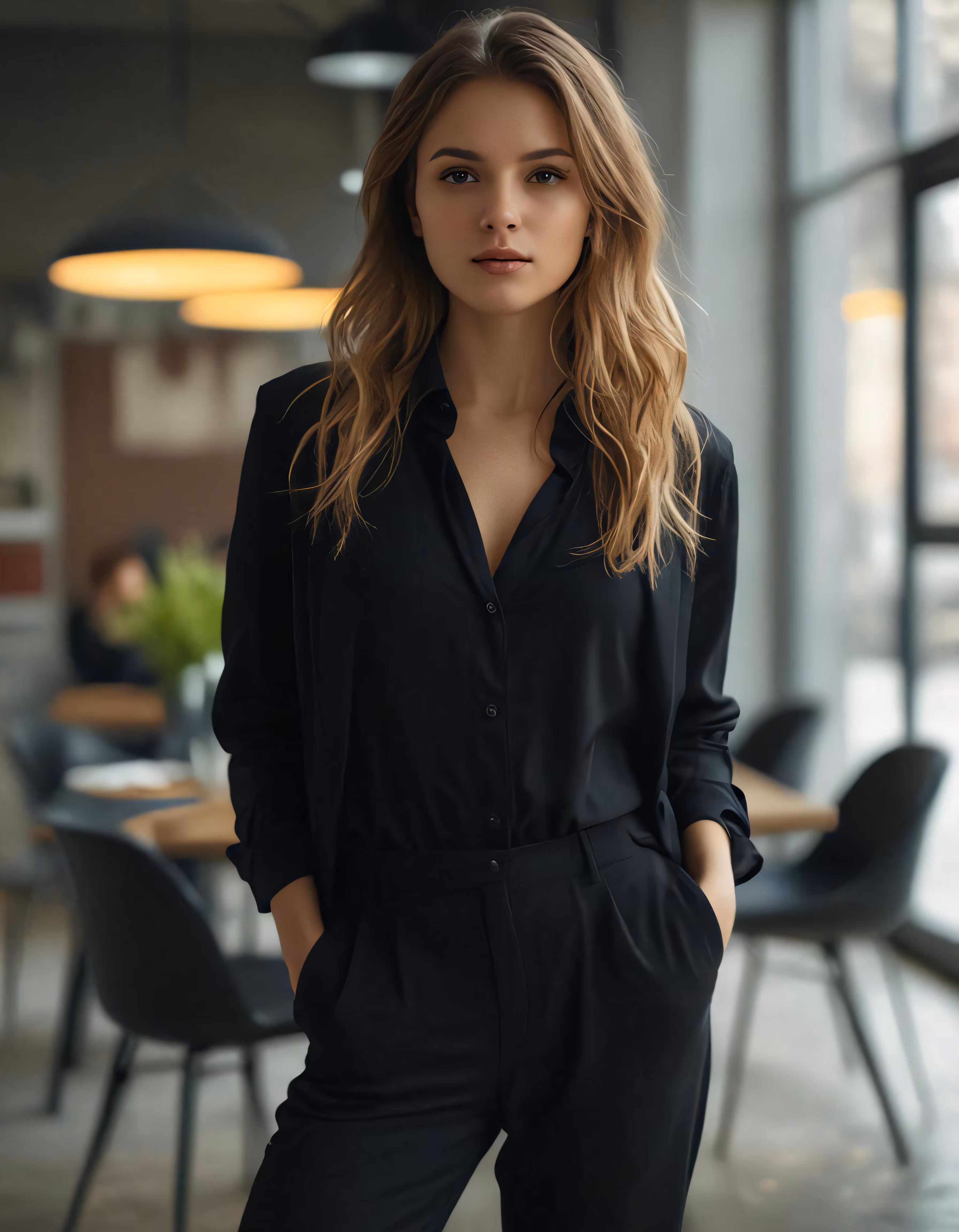 High resolution picture, free to use, a woman in black clothing posing for the camera